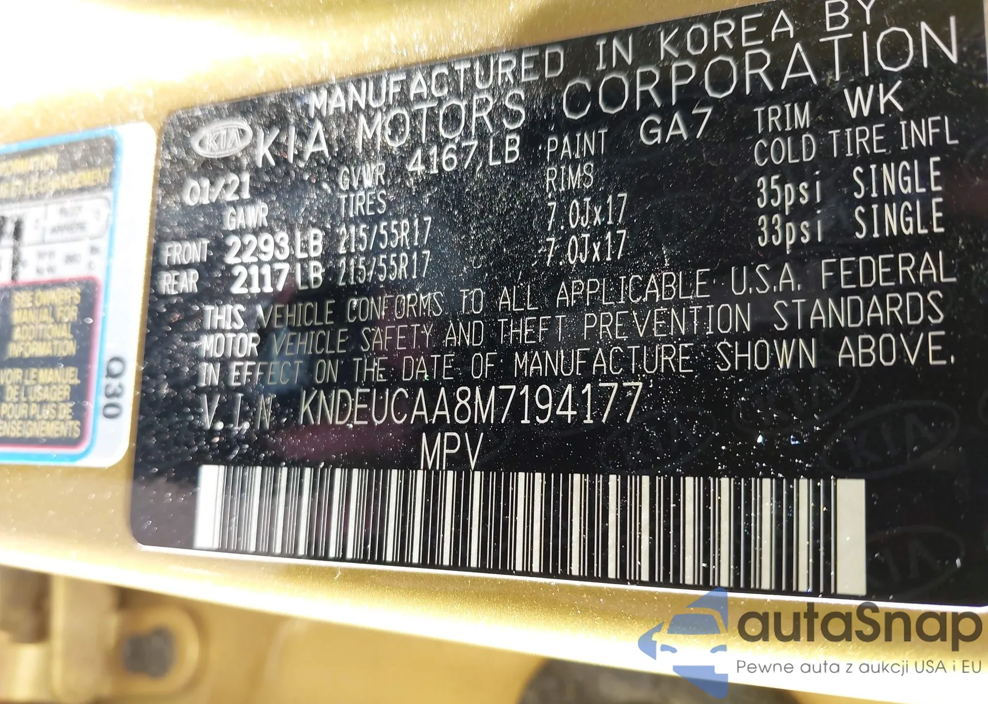 • VIN KNDEUCAA8M7194177