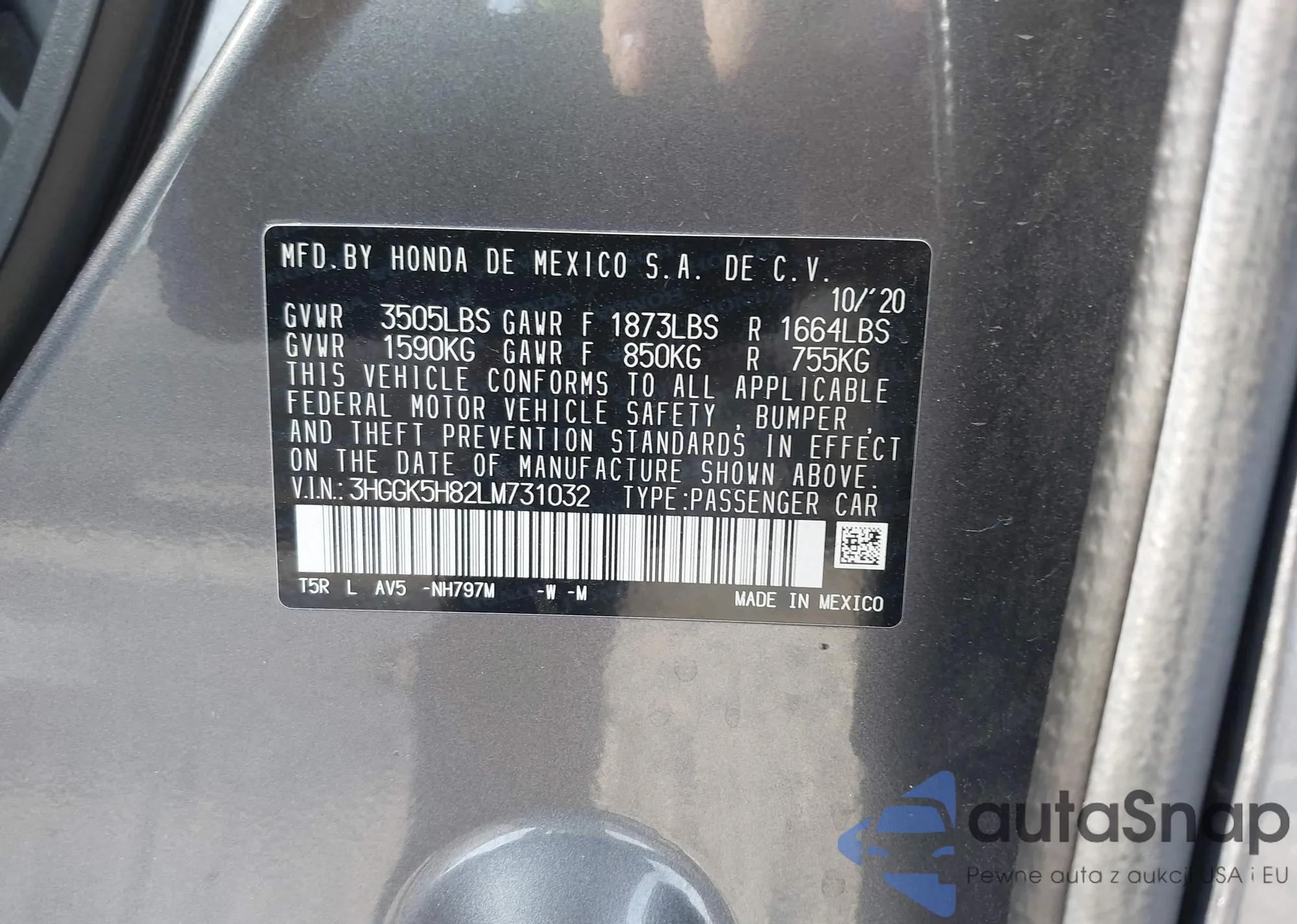 • VIN 3HGGK5H82LM731032