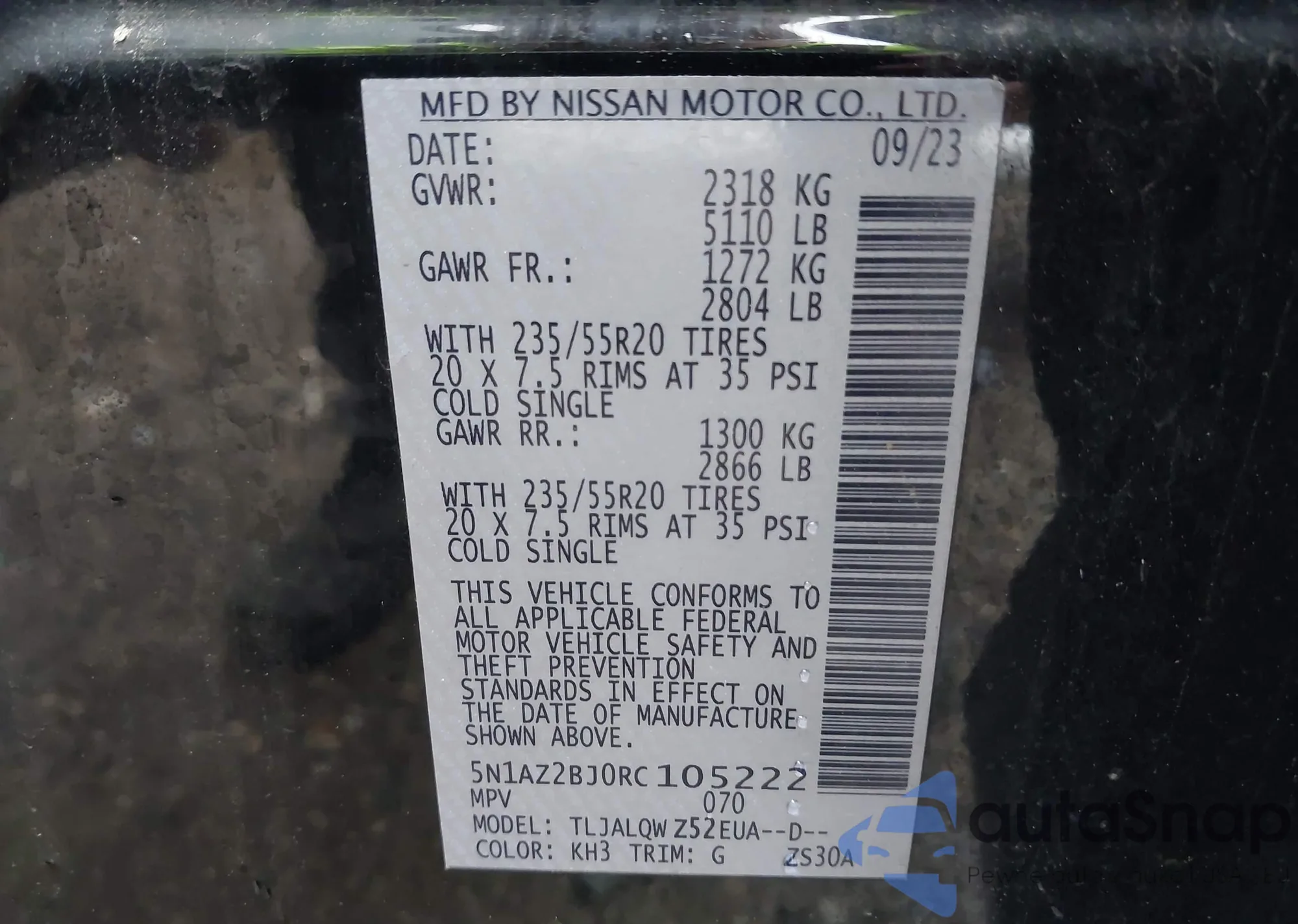 • VIN 5N1AZ2BJ0RC105222