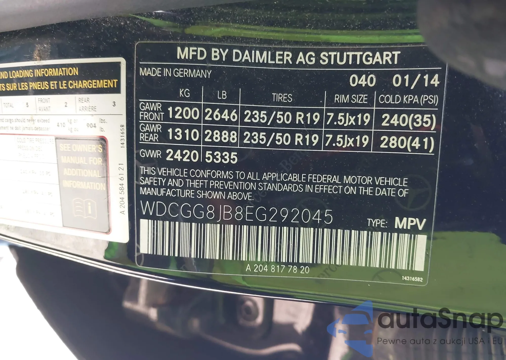 • VIN WDCGG8JB8EG292045