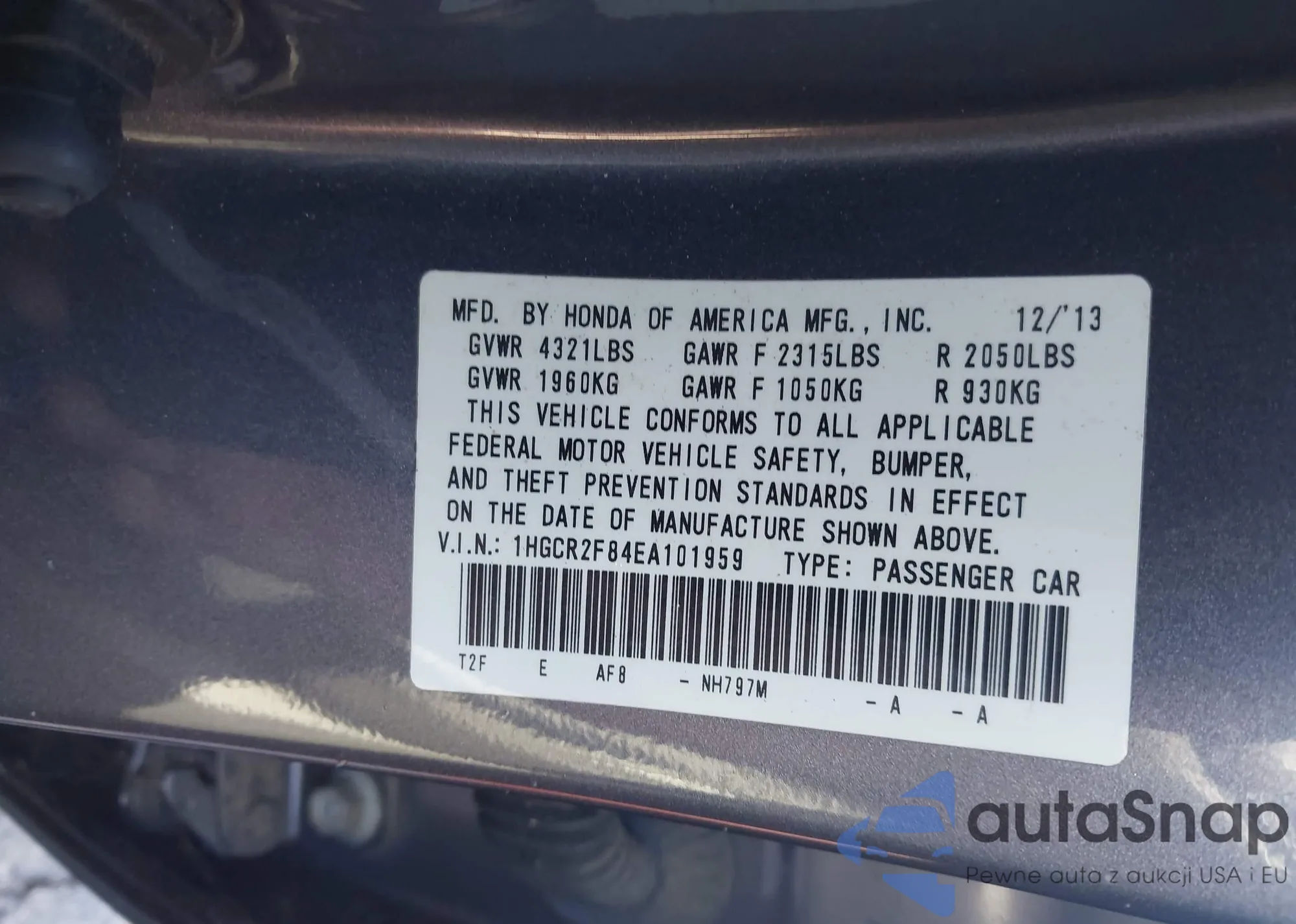 • VIN 1HGCR2F84EA101959