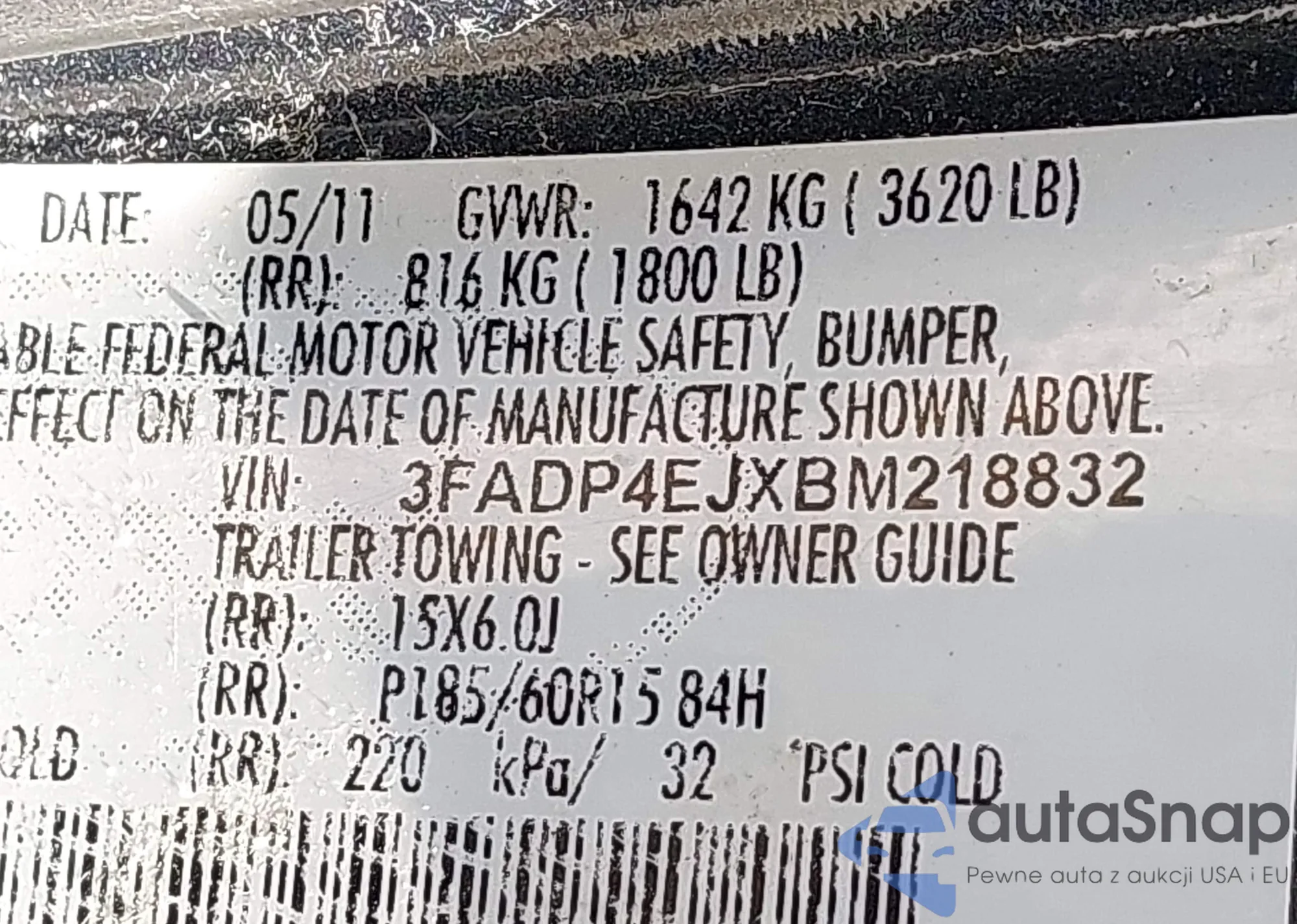 • VIN 3FADP4EJXBM218832