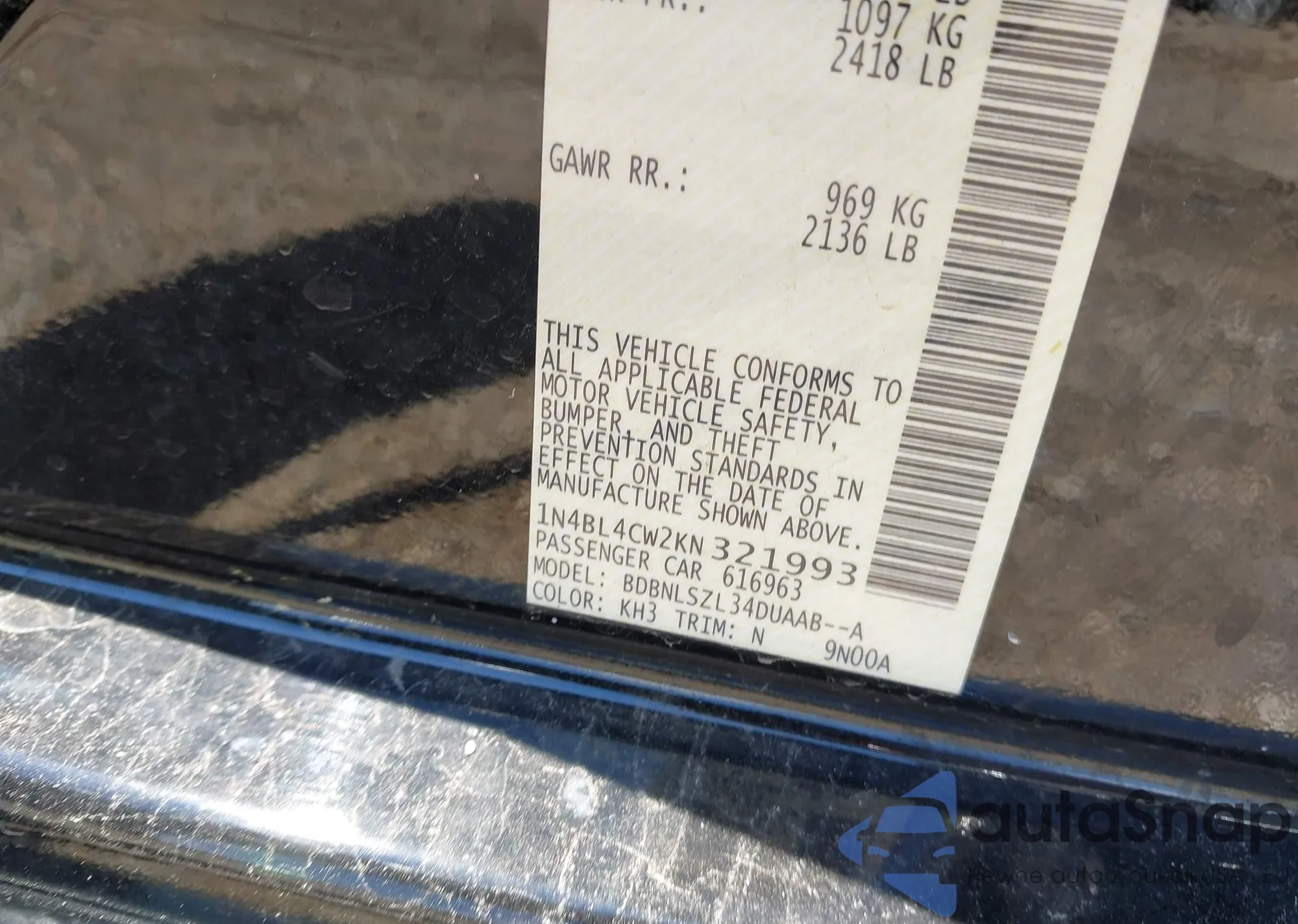 • VIN 1N4BL4CW2KN321993