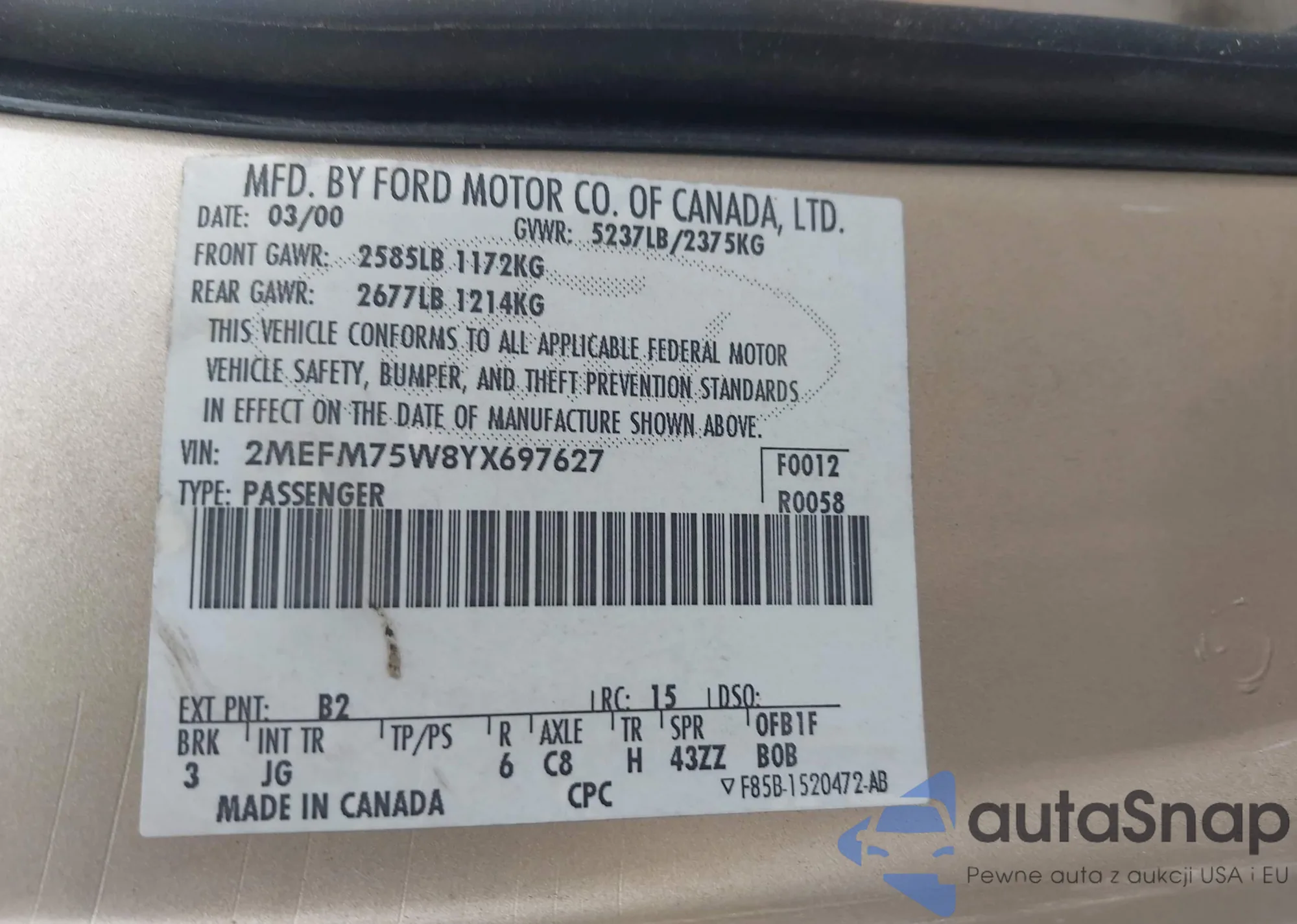 • VIN 2MEFM75W8YX697627