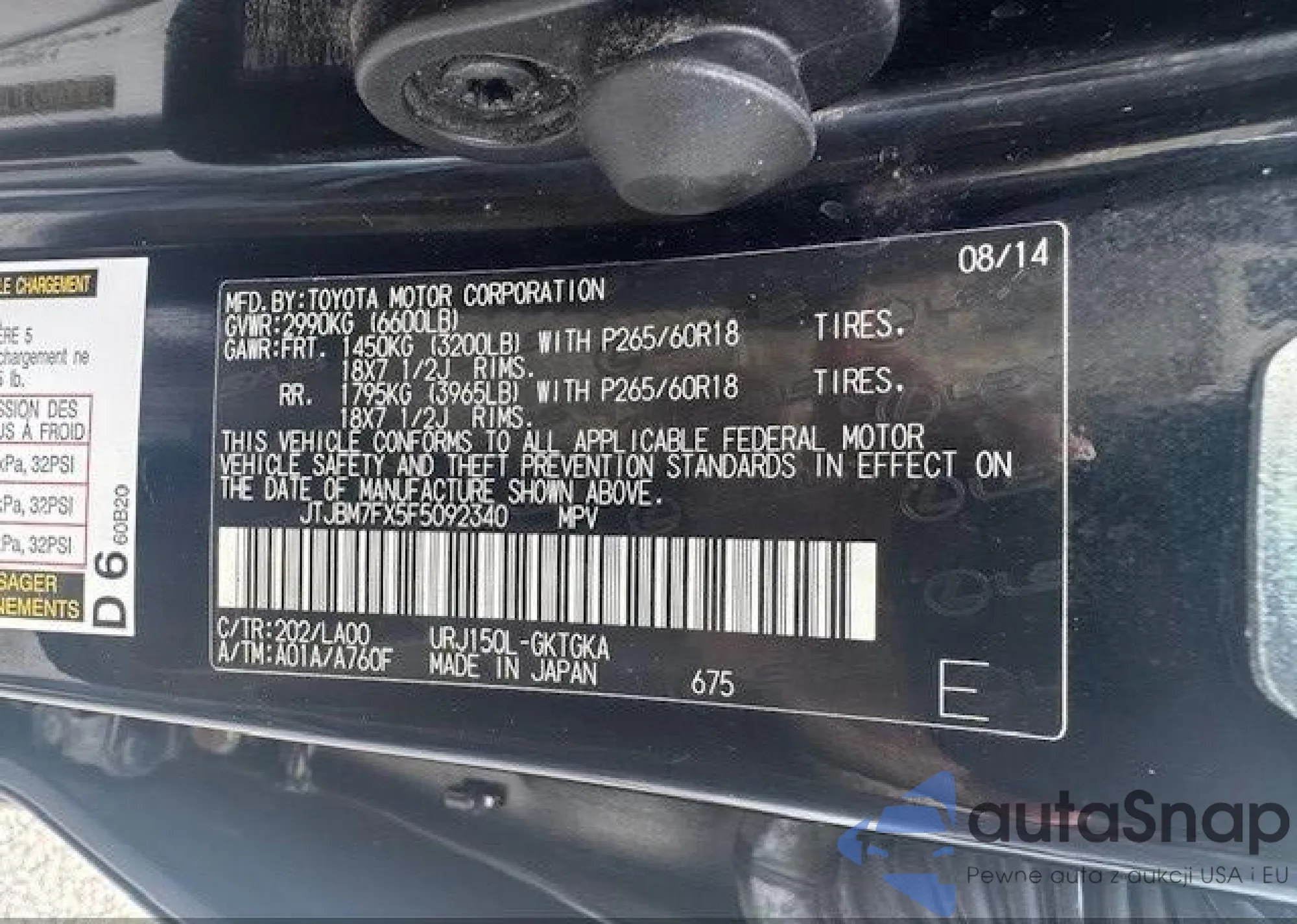 LOT: 42466772 VIN: JTJBM7FX5F5092340