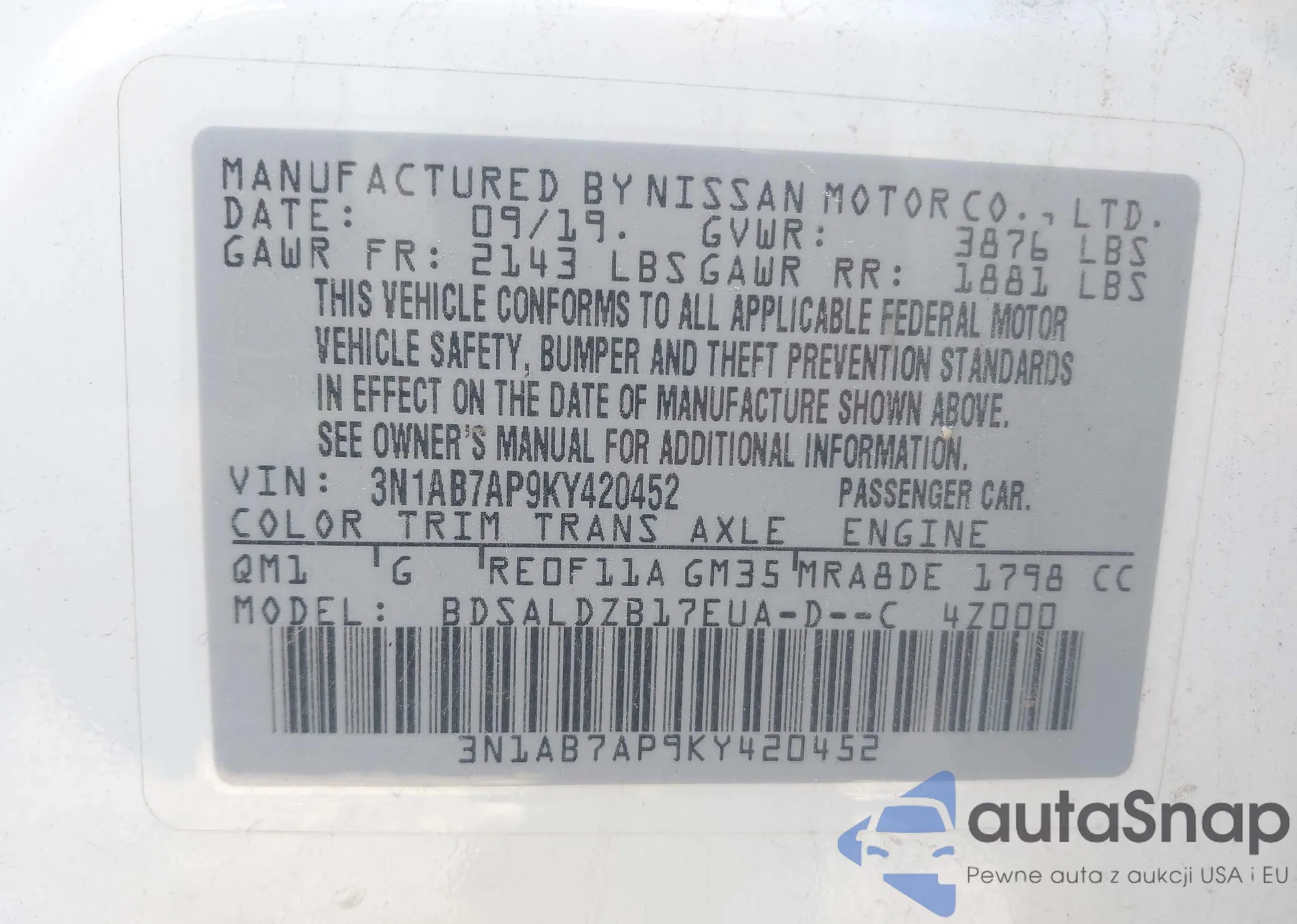 • VIN 3N1CN7AP3EL830455