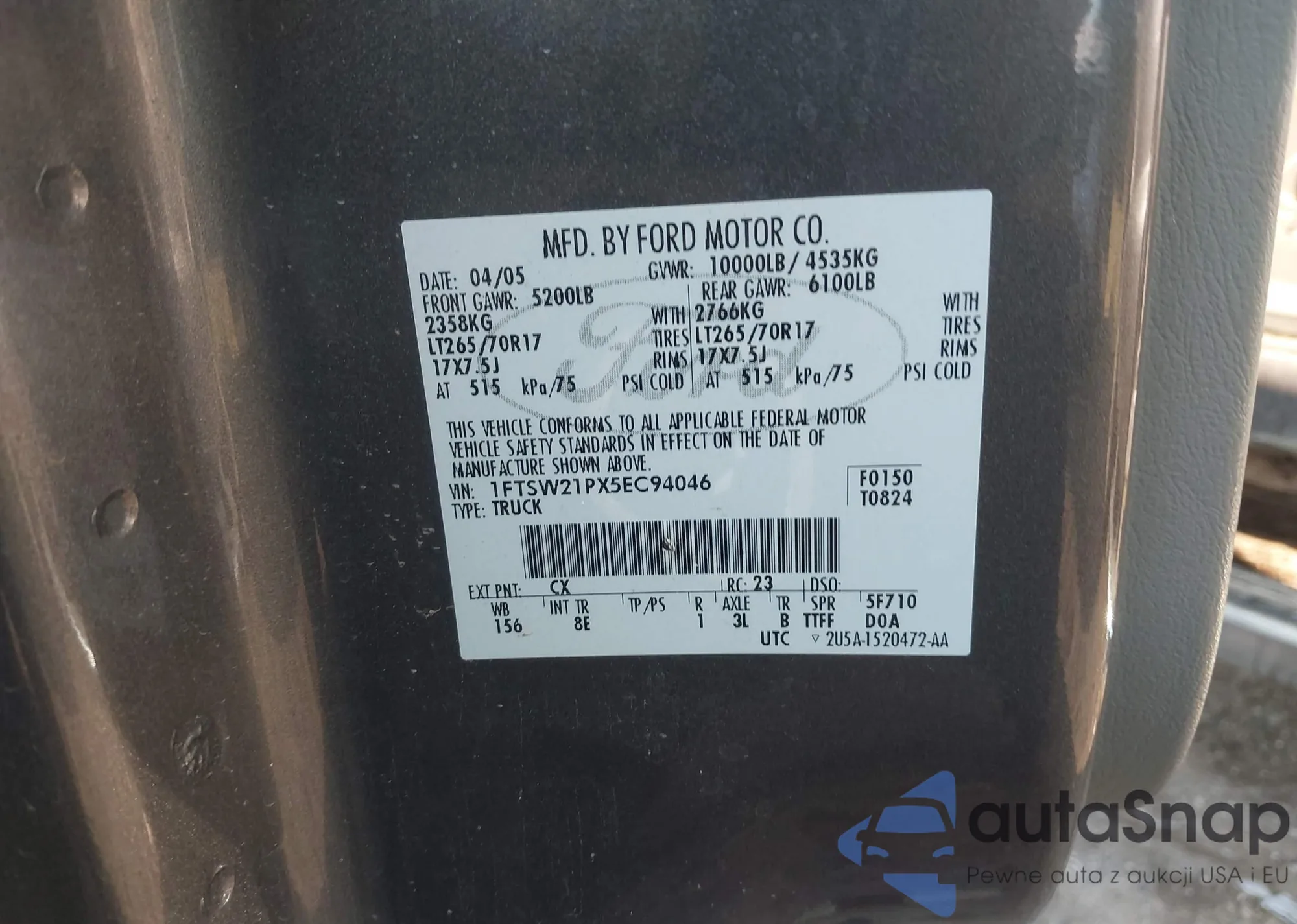 LOT: 42503343 VIN: 1FMPU18L54LB20495