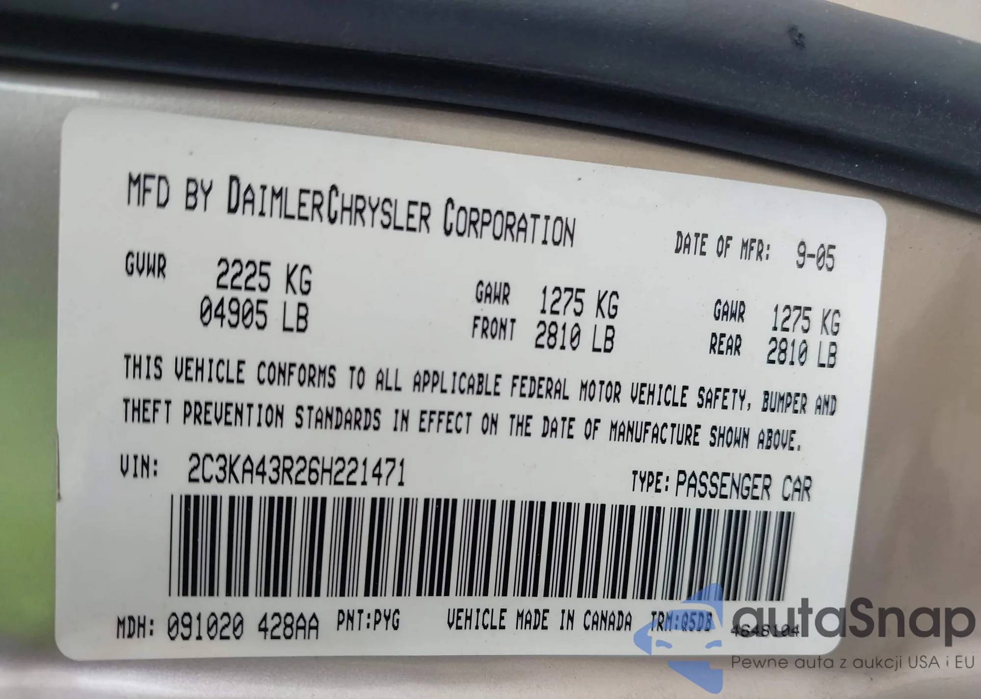• VIN 2C3KA43R26H221471