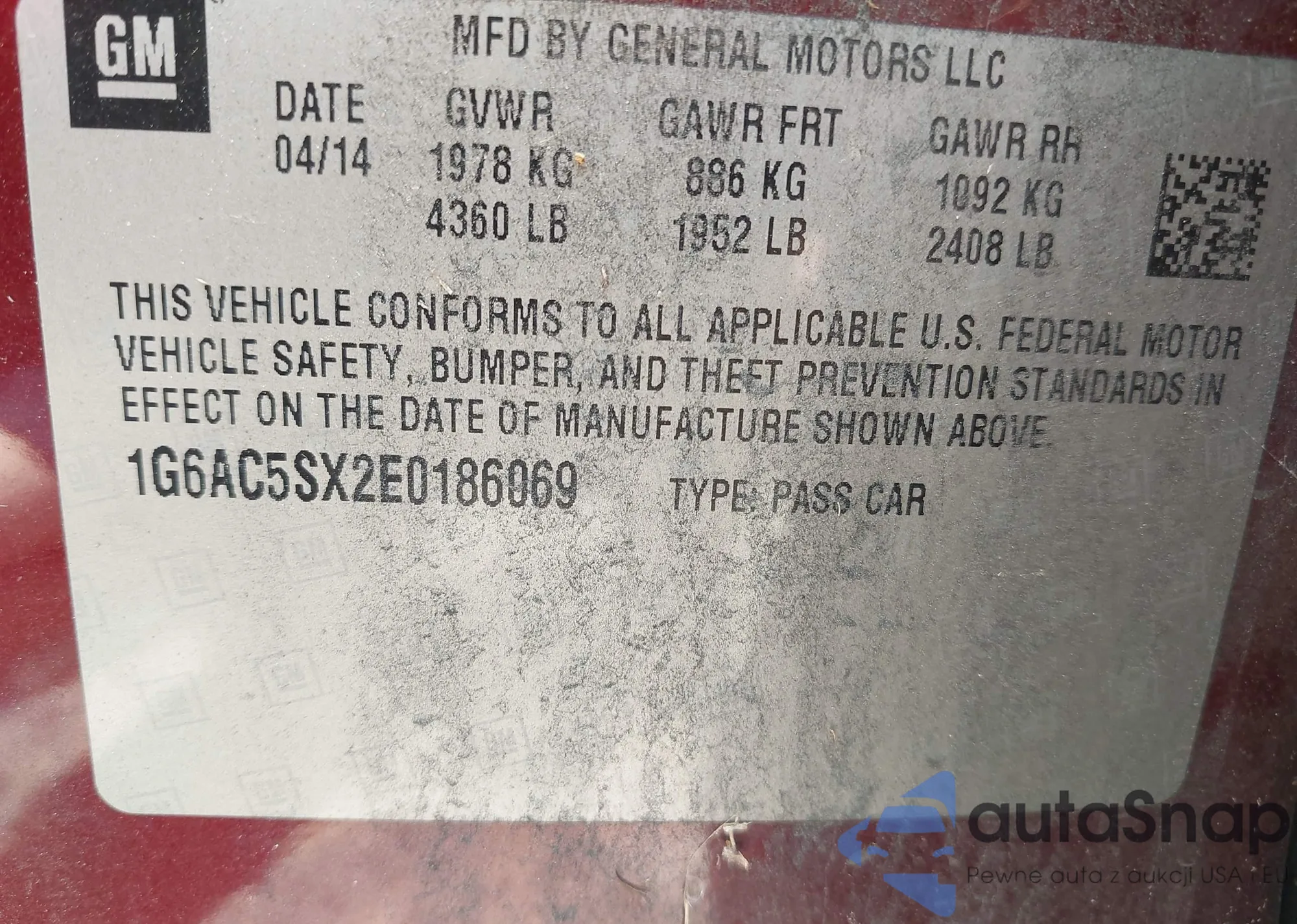 • VIN 1G6AC5SX2E0186069