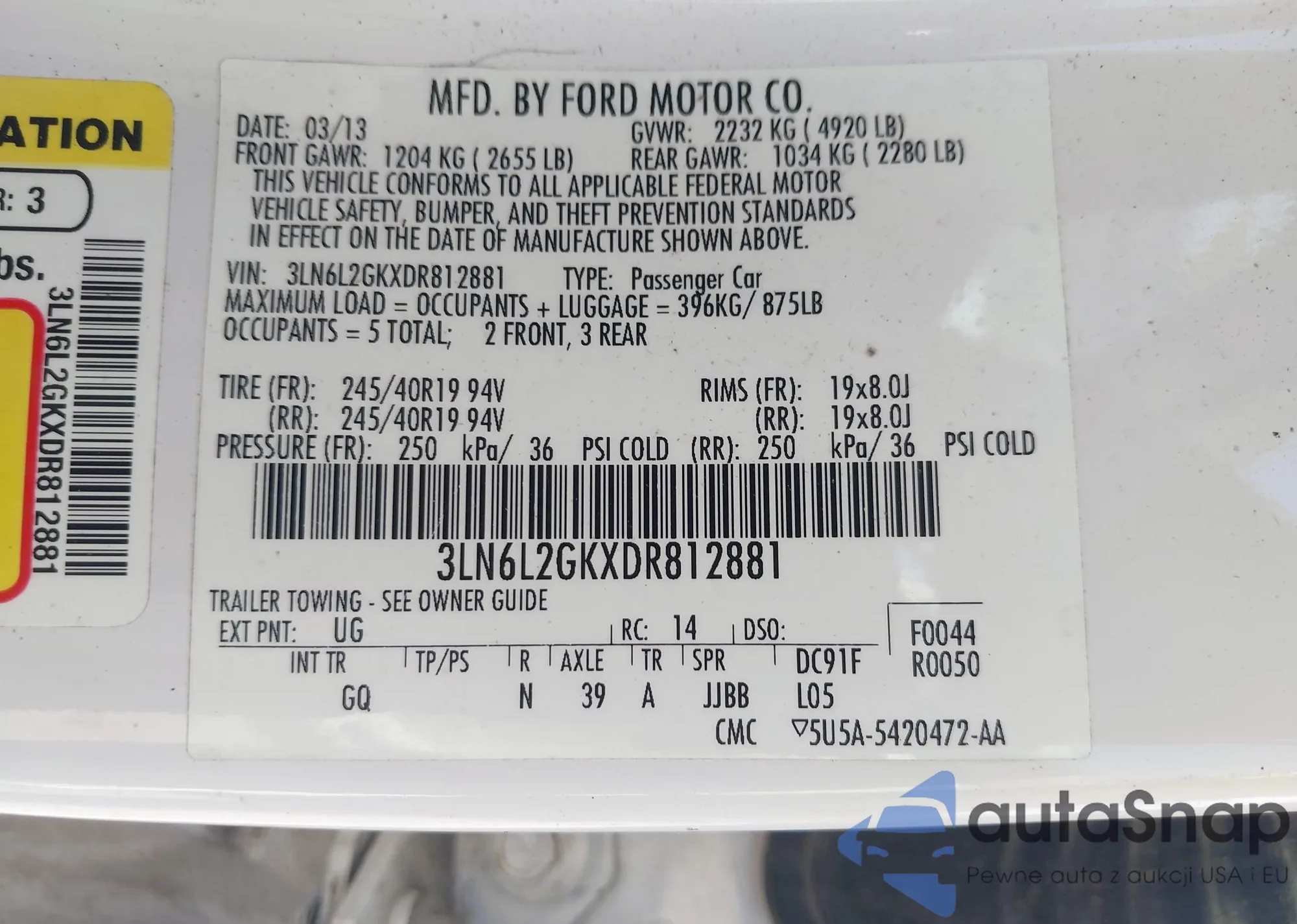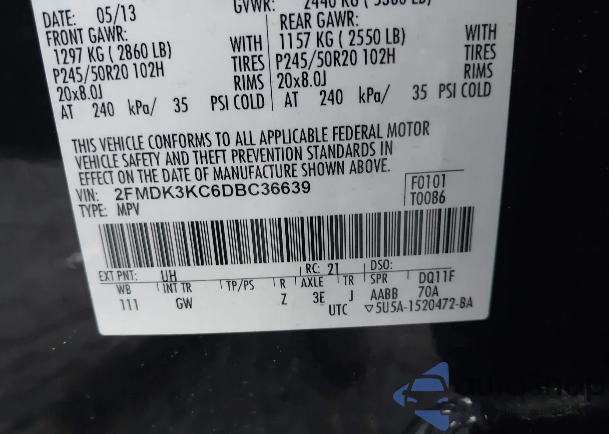 LOT: 42471160 VIN: 2FMDK3KC6DBC36639