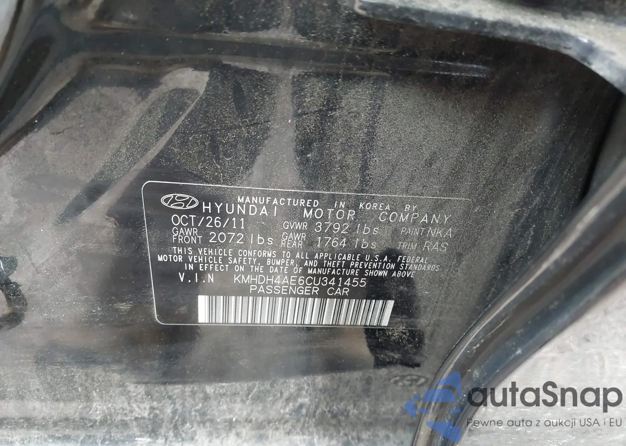 LOT: 42540274 VIN: KMHDH4AE6CU341455