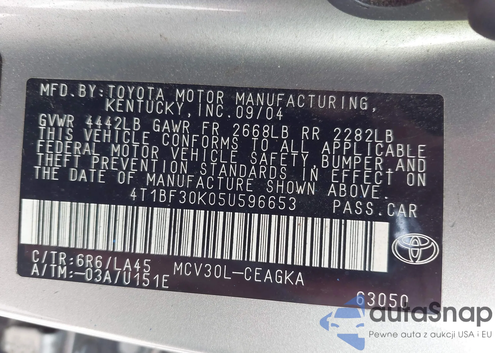 • VIN 4T1BF30K05U596653