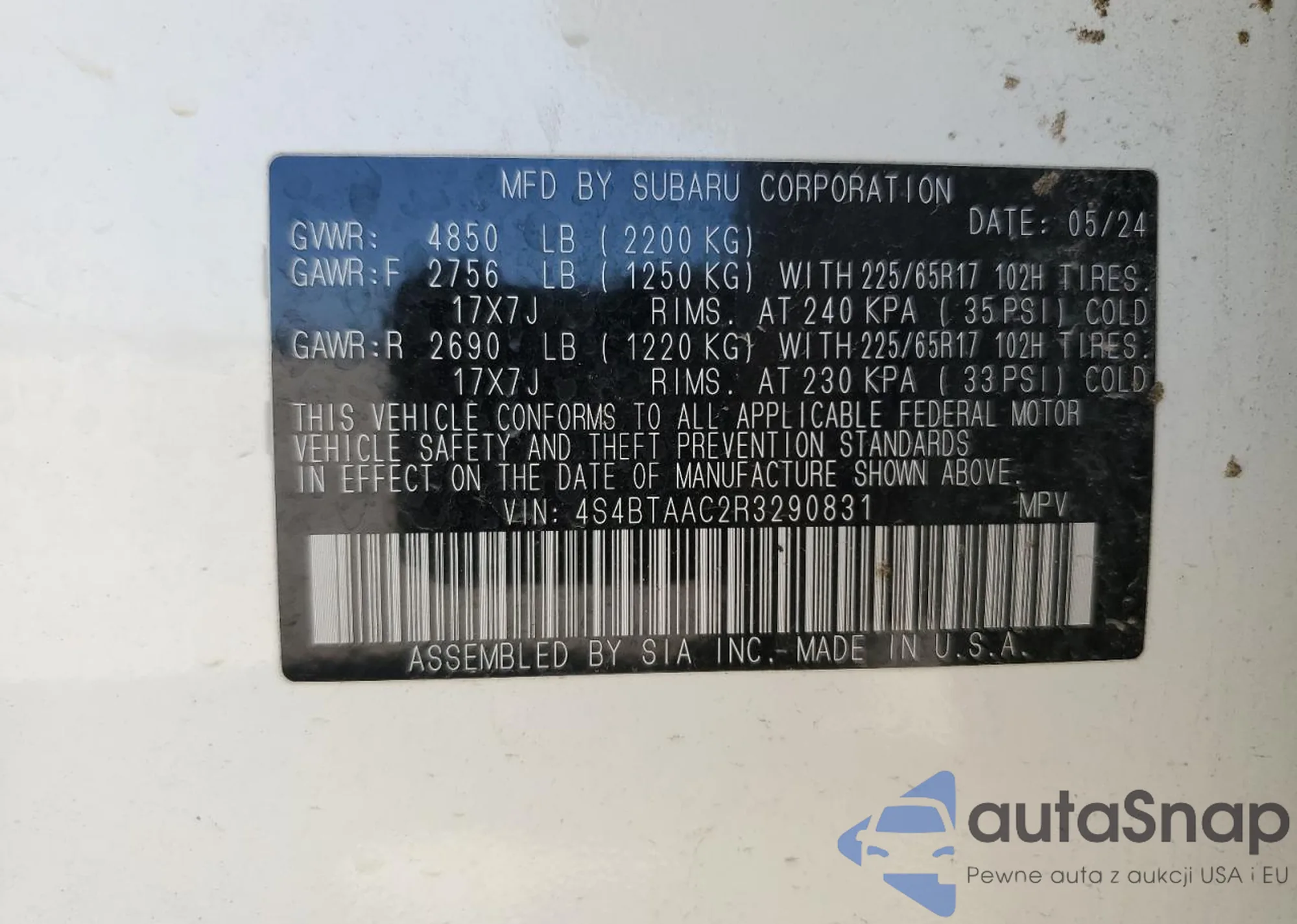 • VIN 4S4BTAAC2R3290831