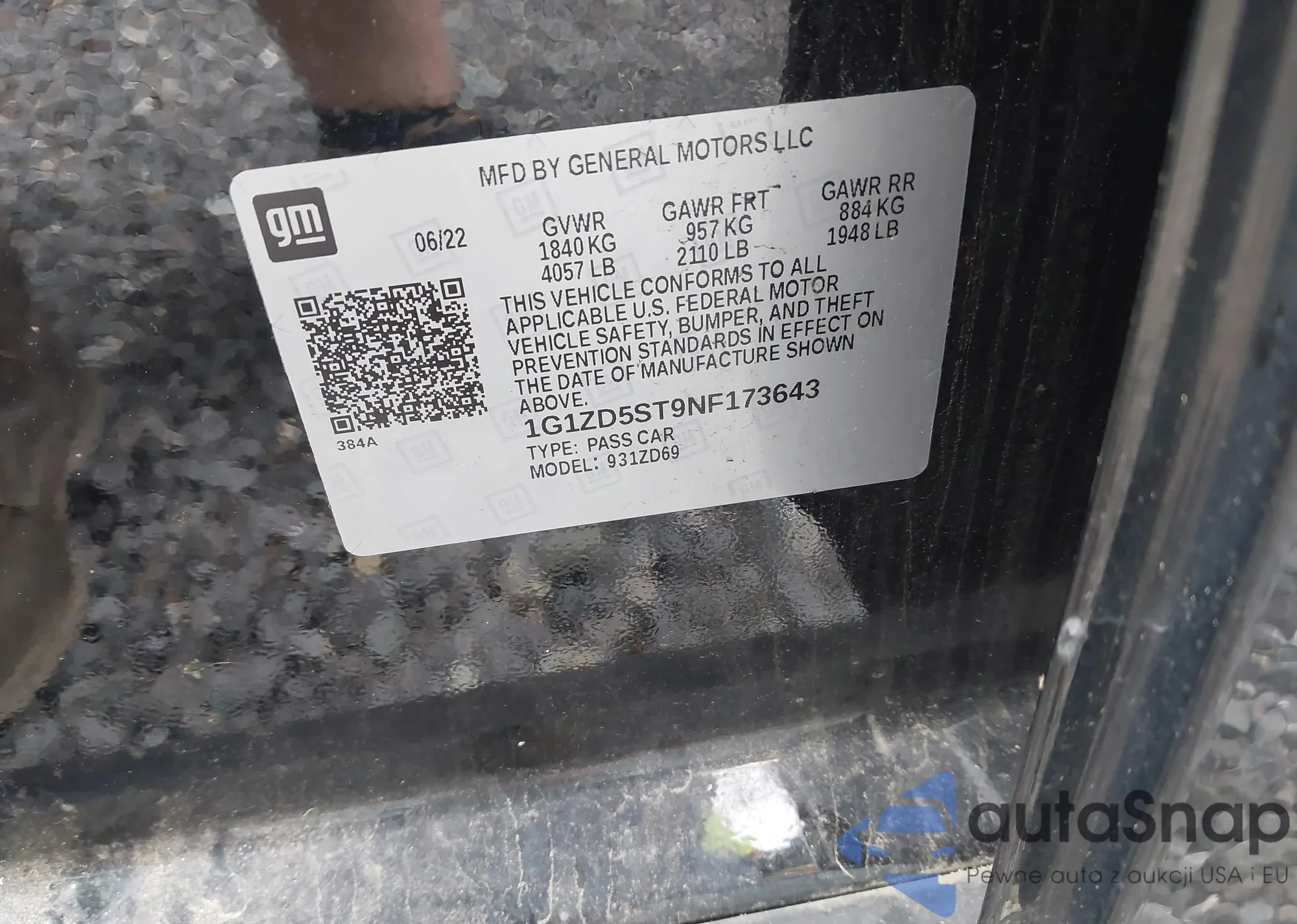 • VIN 1G1ZD5ST9NF173643
