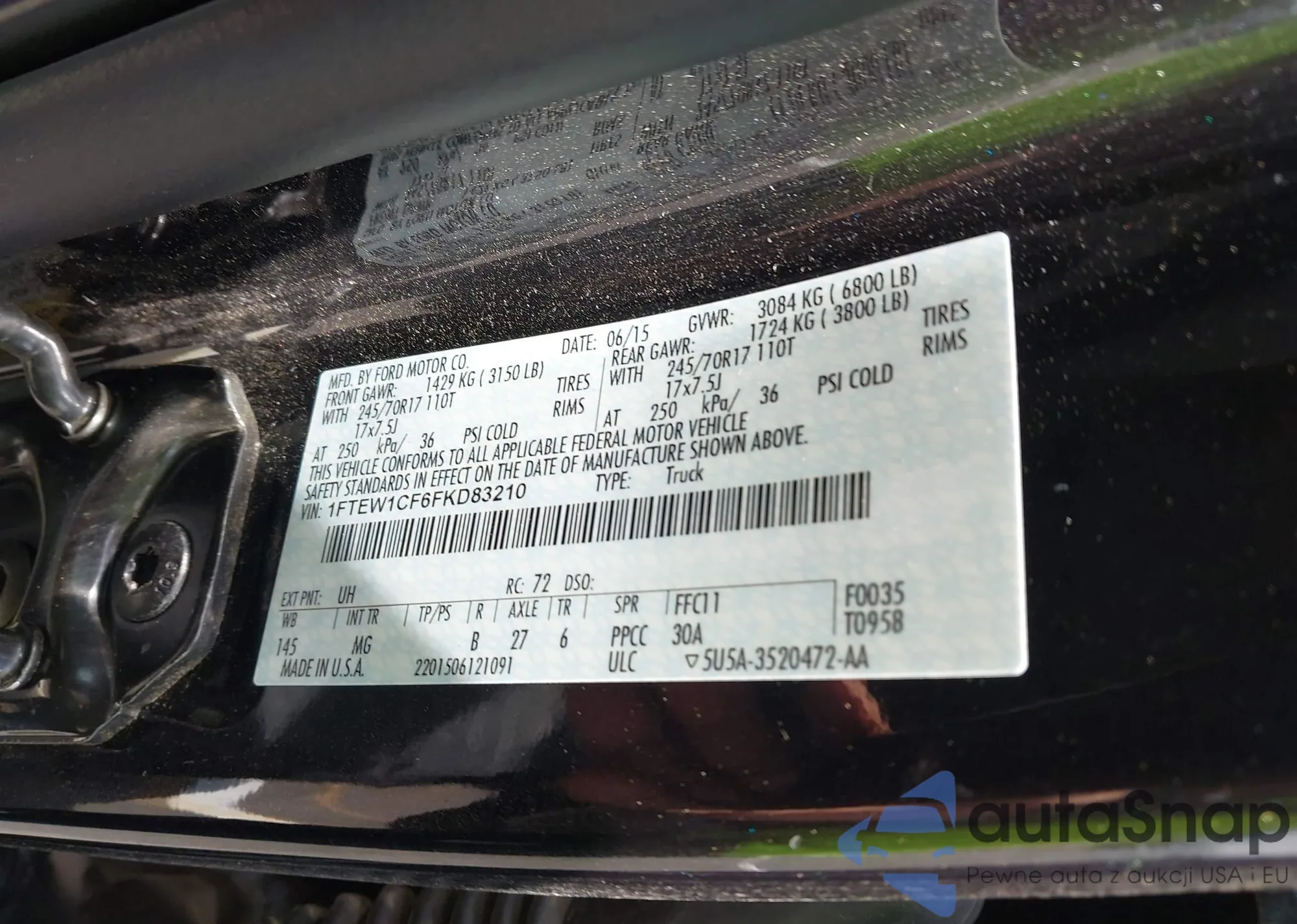 • VIN 1FTEW1CF6FKD83210