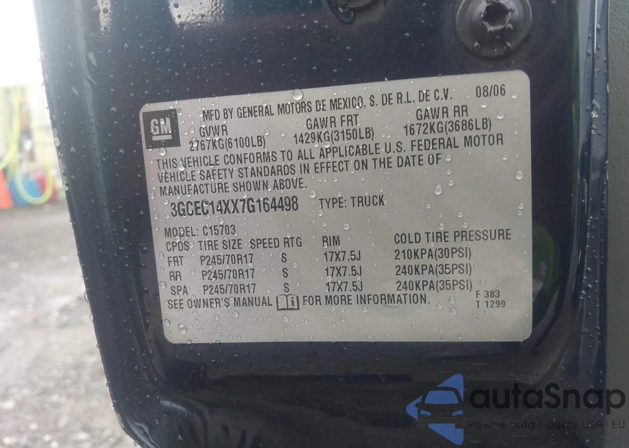 • VIN 3GCEC14XX7G164498