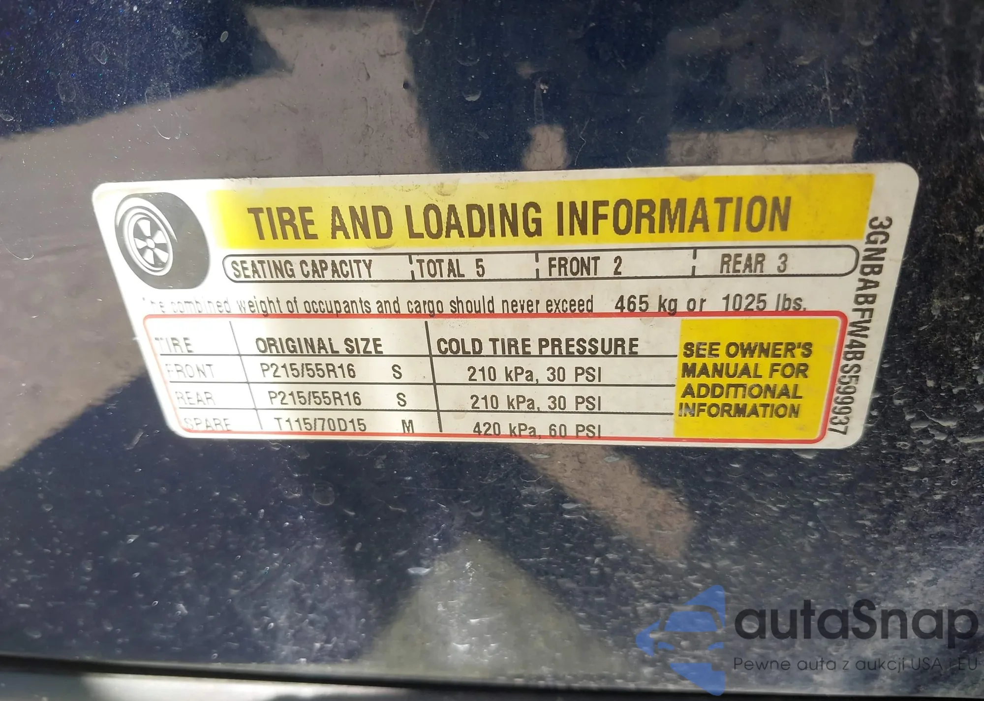 • VIN 3GNBABFW4BS599937