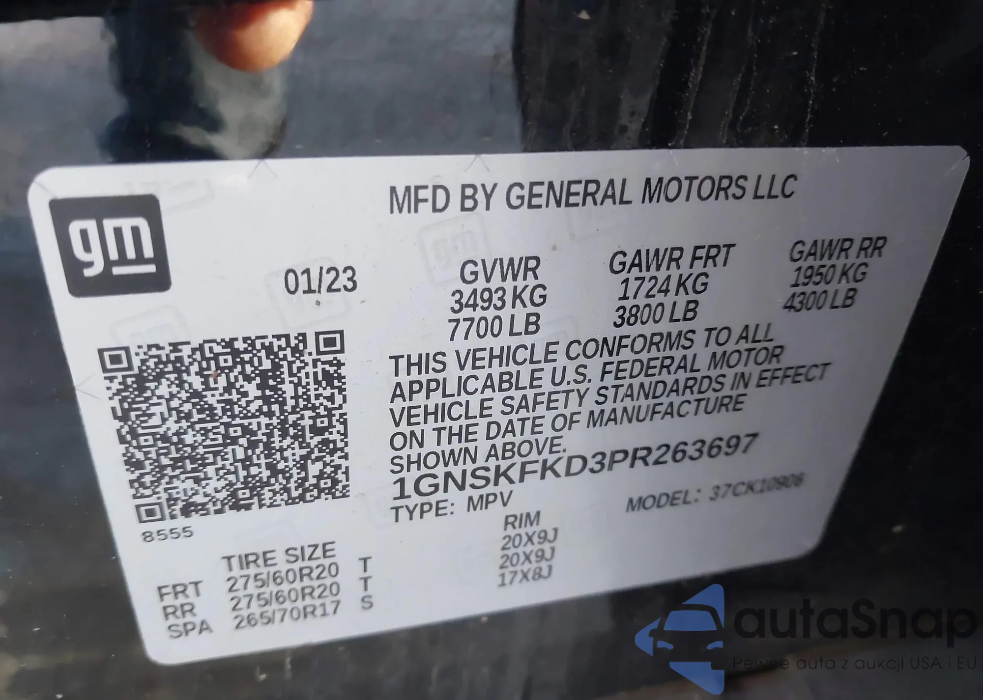 LOT: 41903910 VIN: 1GNSKFKD3PR263697