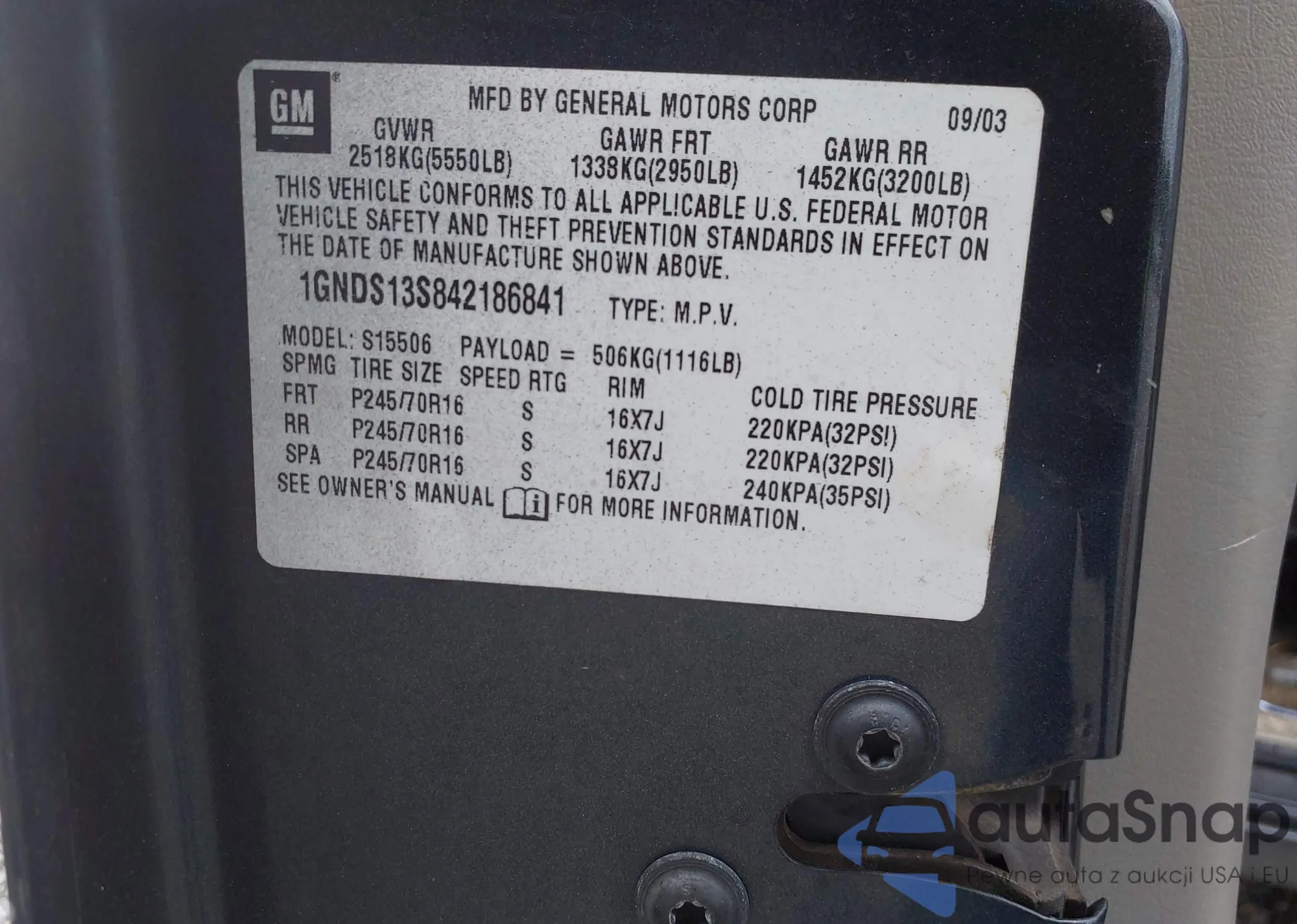 LOT: 42647527 VIN: 1GNDS13S842186841