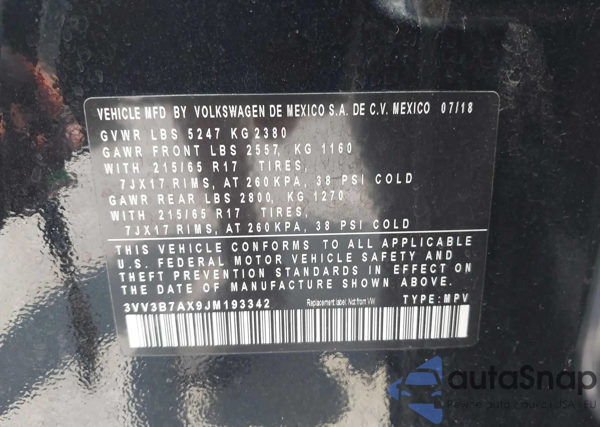 • VIN 3VV3B7AX9JM193342