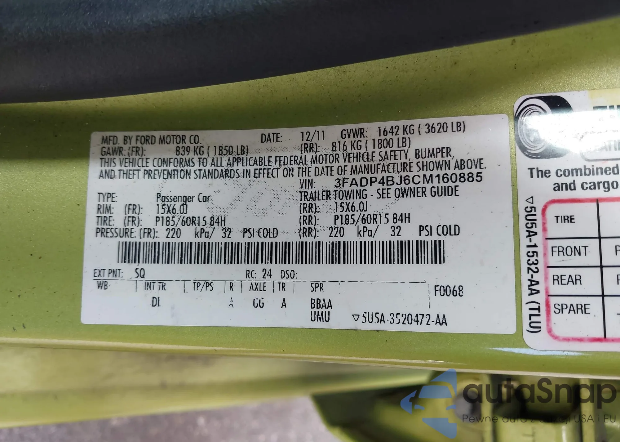 • VIN 3FADP4BJ6CM160885