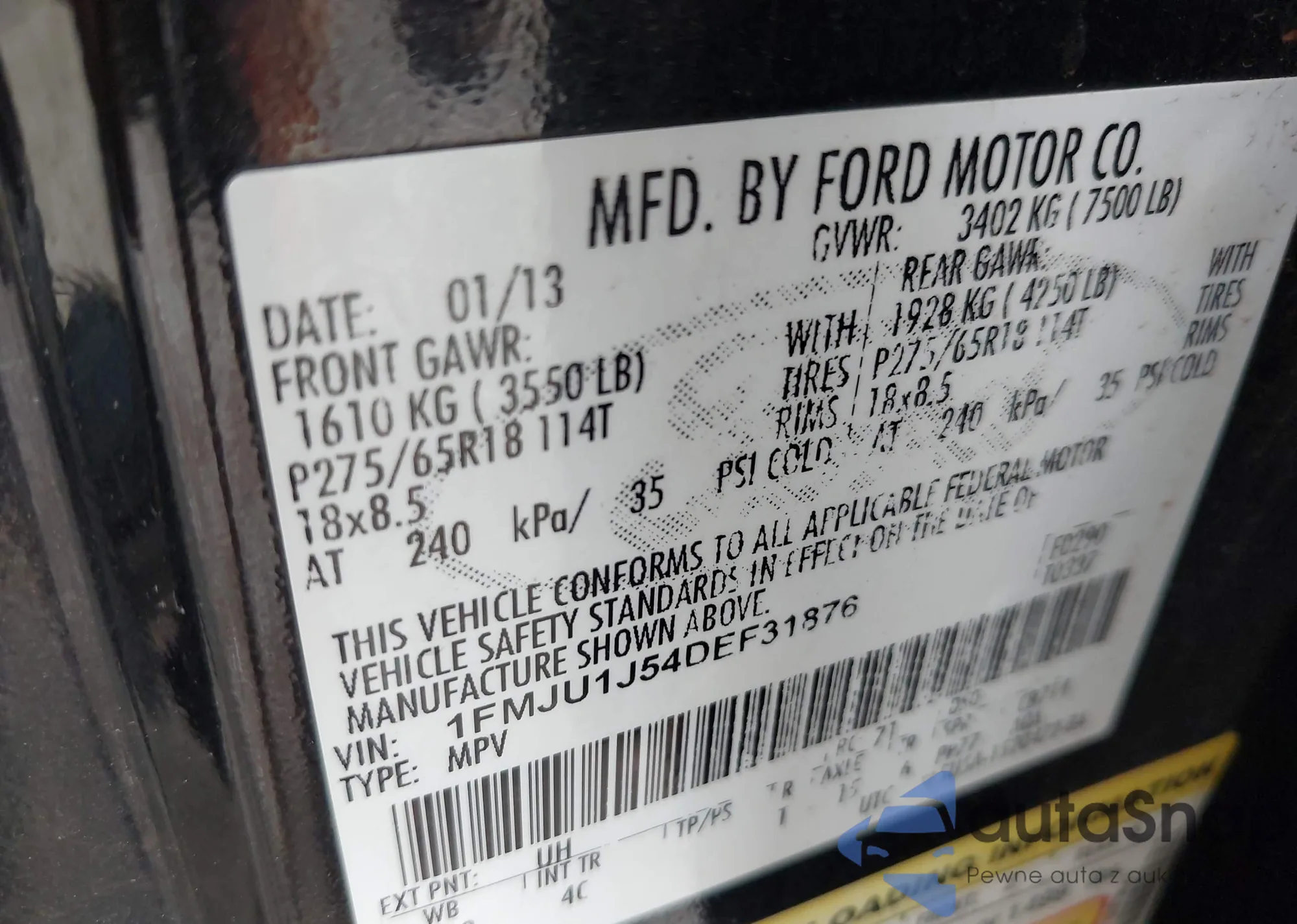 LOT: 42331008 VIN: 1FMCU0J95DUD37885
