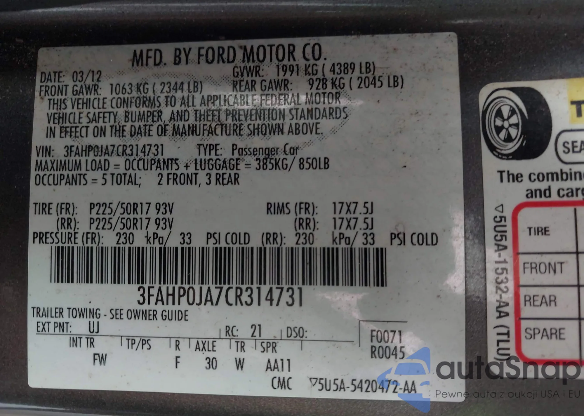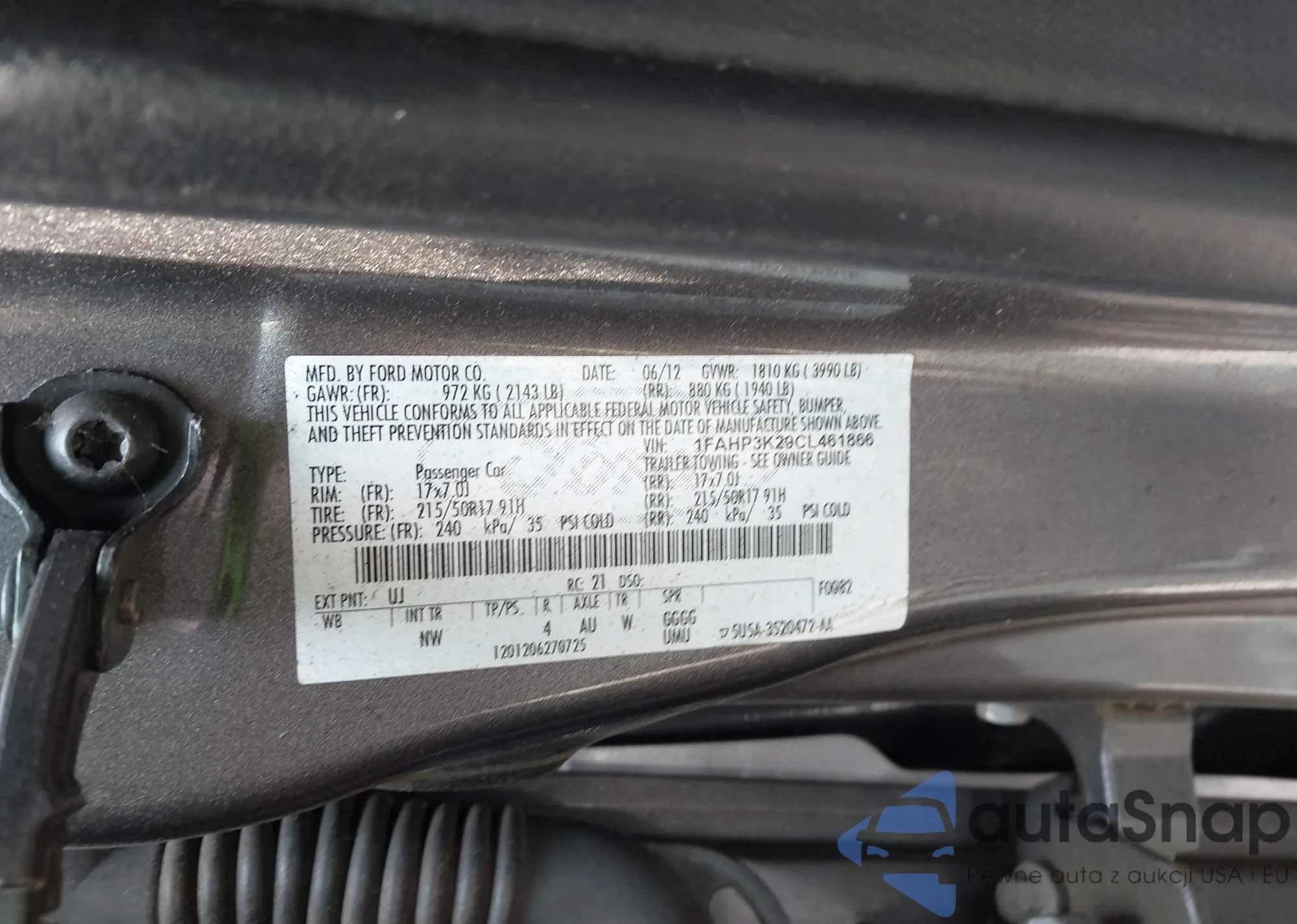 LOT: 42502645 VIN: 3FADP4BJ6CM160885