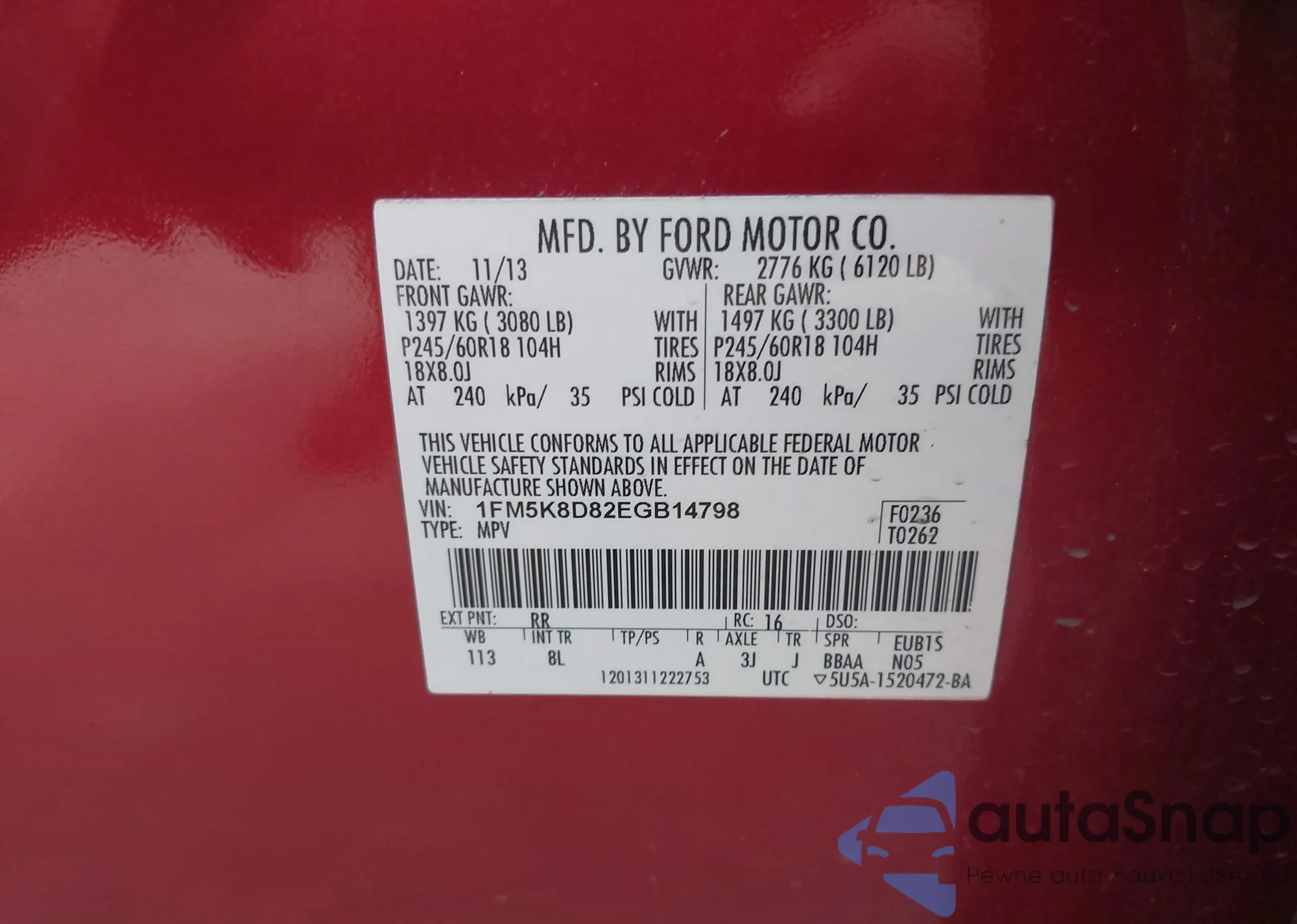 LOT: 42560888 VIN: 1FM5K8D82EGB14798