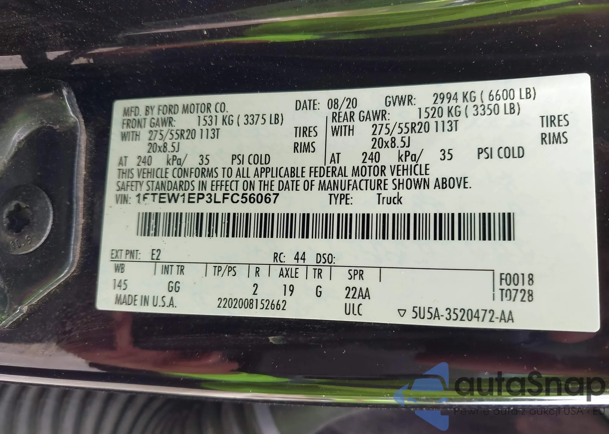 • VIN 1FTEW1EP3LFC56067