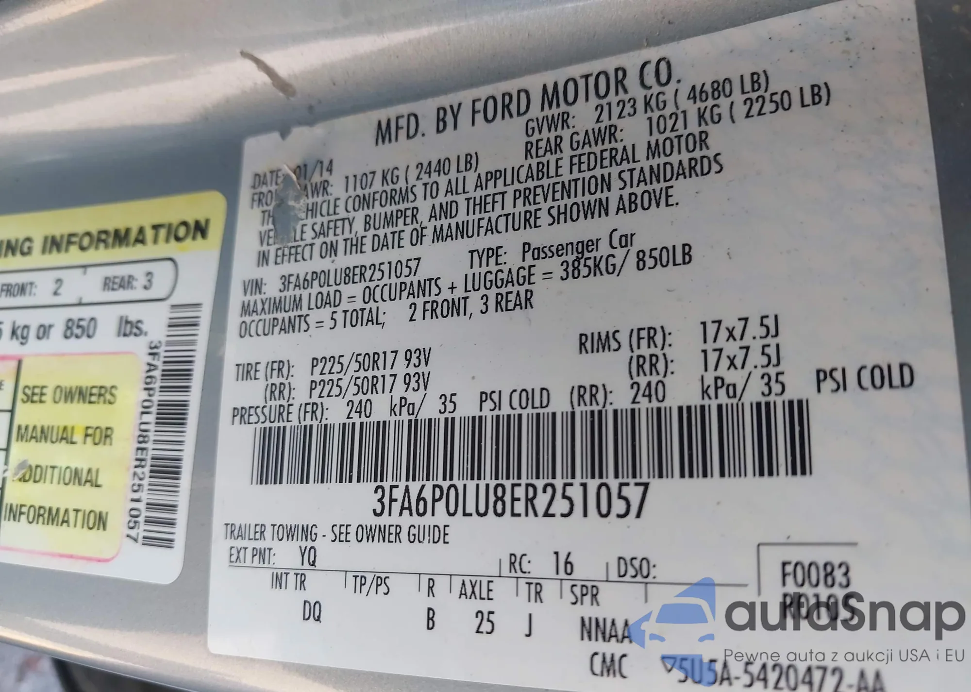 • VIN 3FA6P0LU8ER251057