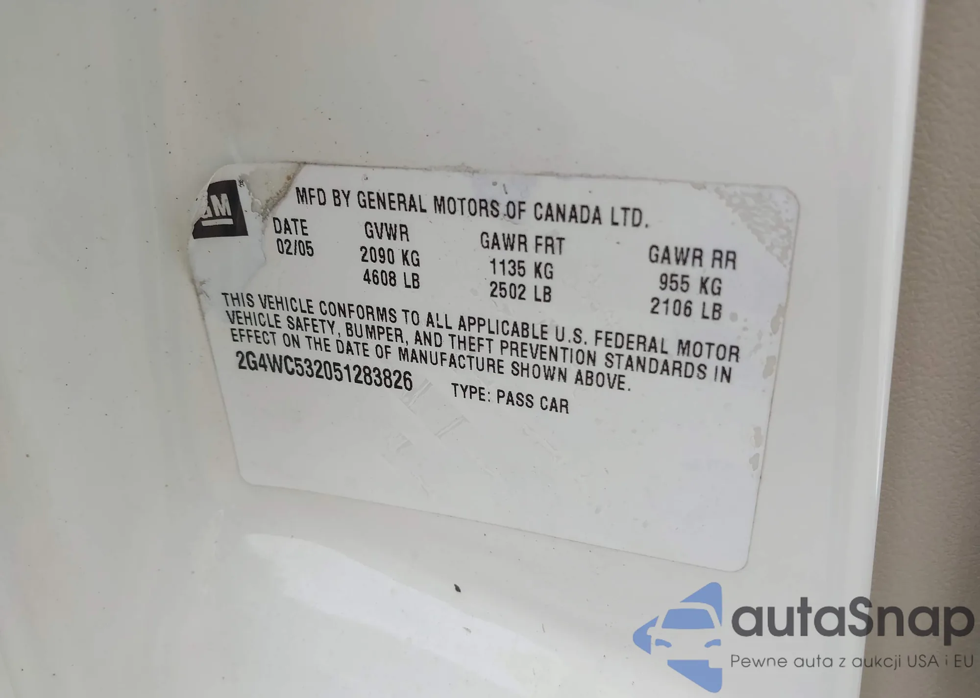 • VIN 2G4WC532051283826
