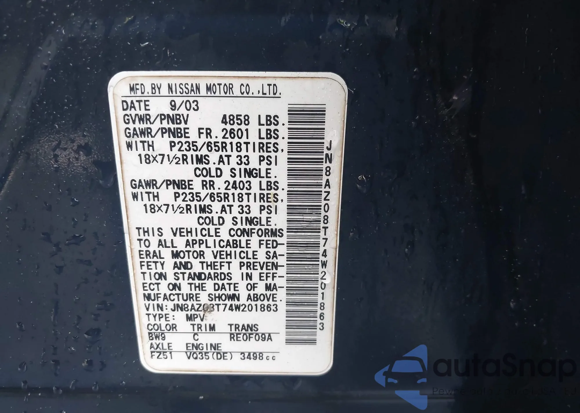 • VIN JN8AZ08T74W201863