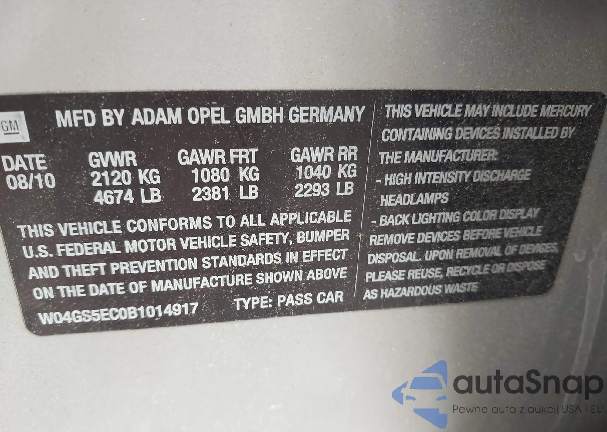 • VIN W04GS5EC0B1014917