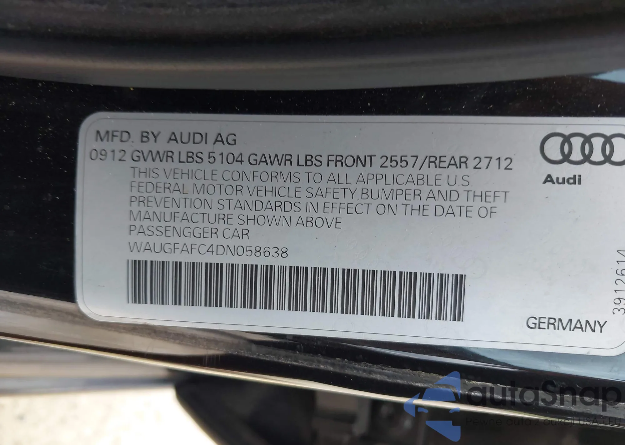 LOT: 42579172 VIN: WAUGFAFC4DN058638