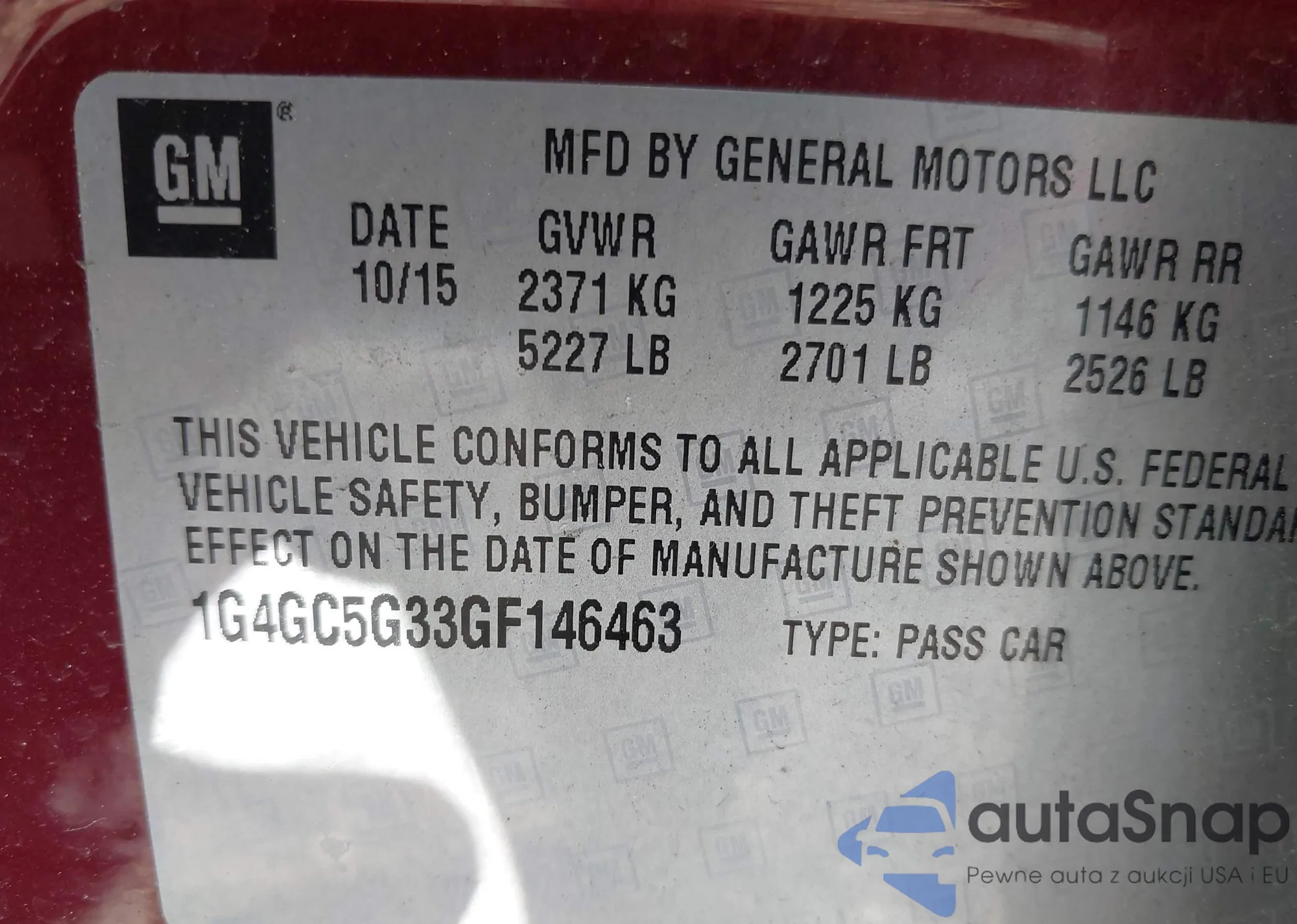 LOT: 42404900 VIN: 1G4GC5G33GF146463