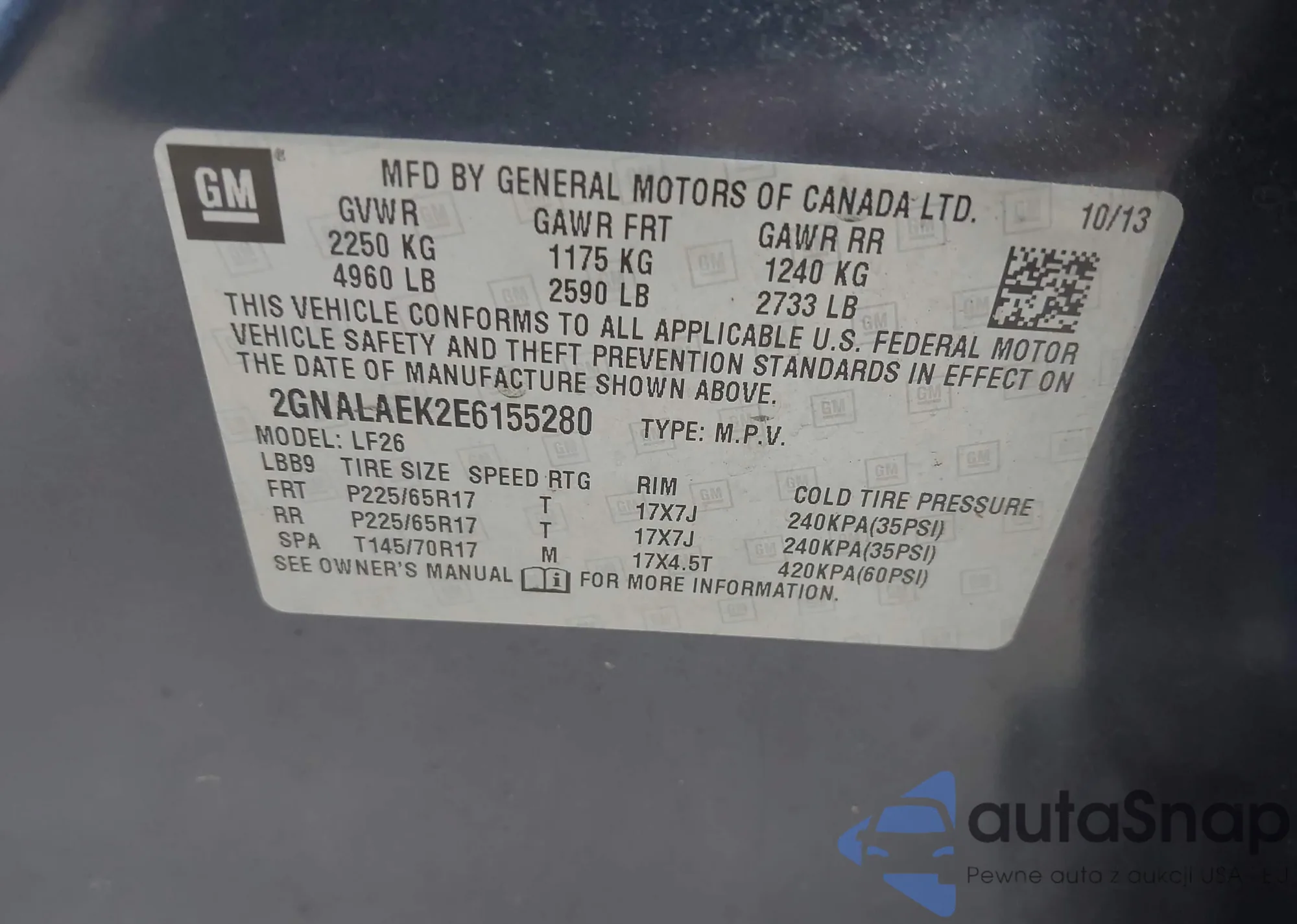 LOT: 42414856 VIN: 2GNALAEK2E6155280