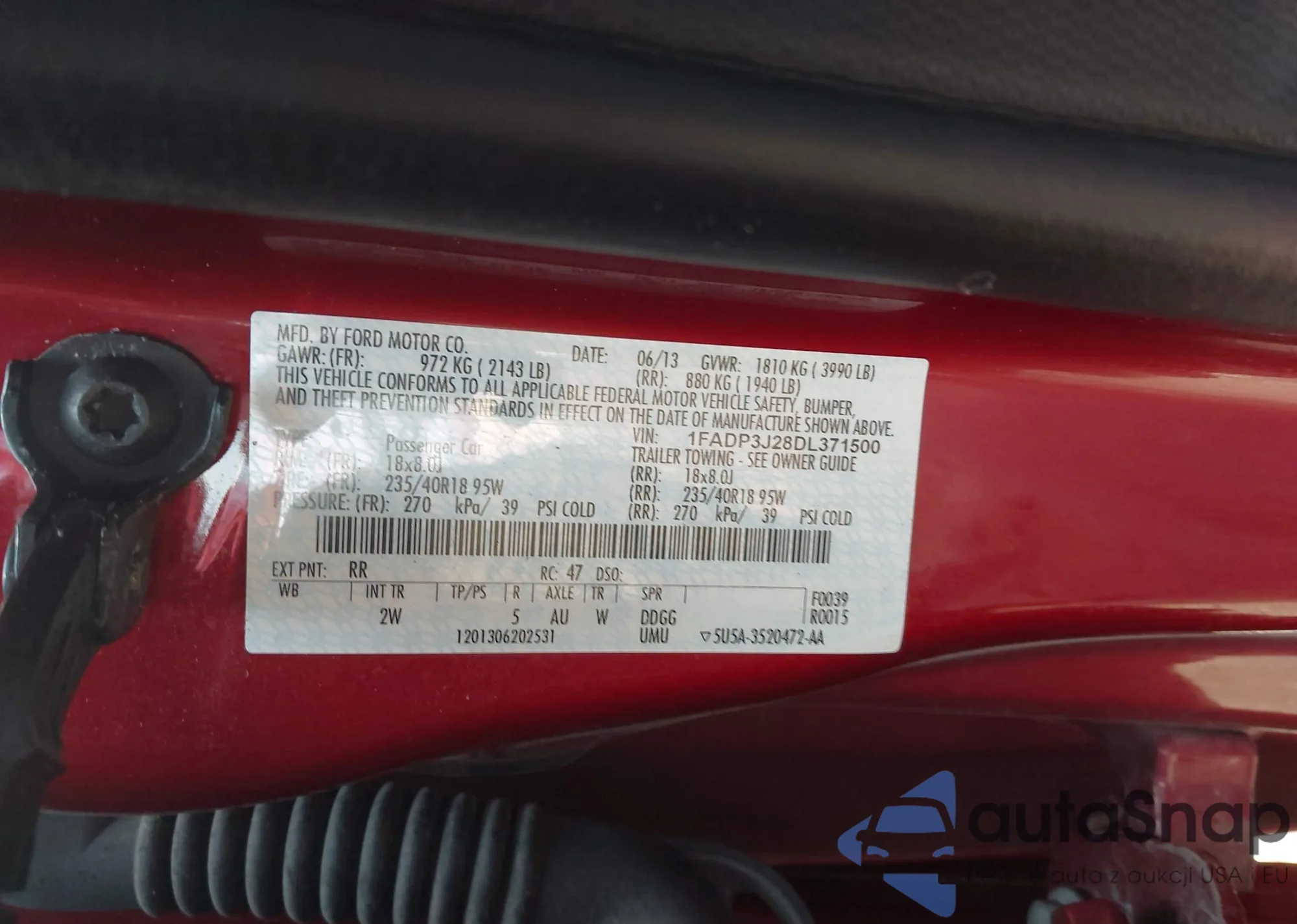 • VIN 3FAHP0HG5CR291511