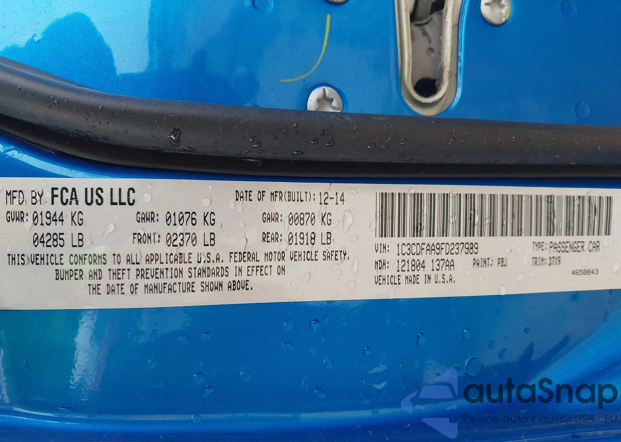 • VIN 1C3CDFAA9FD237989