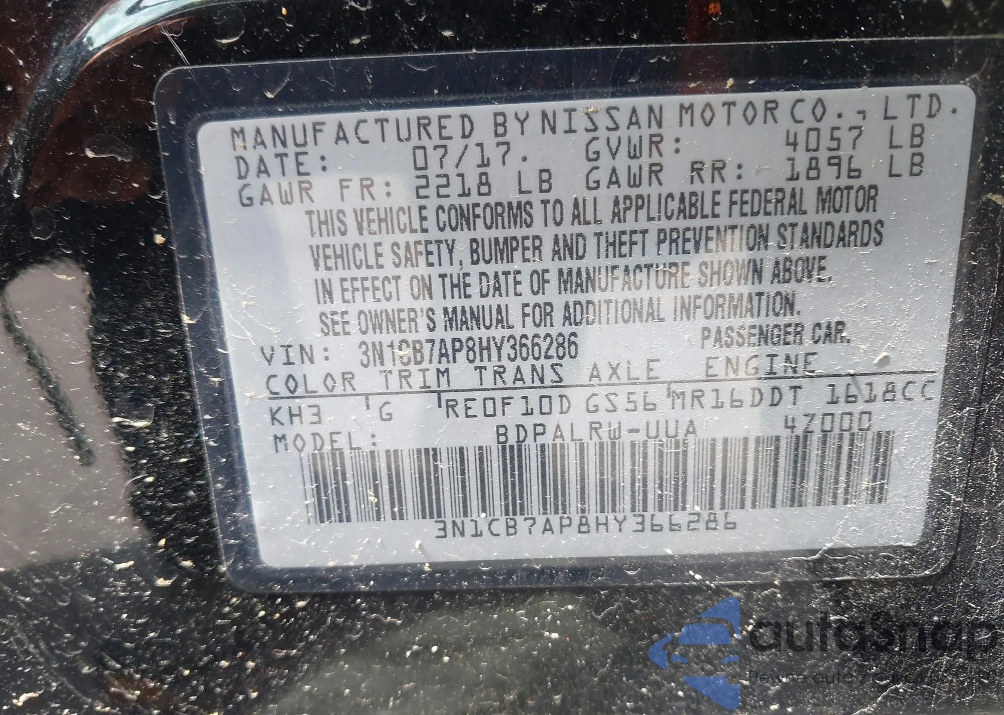 • VIN 3N1CB7AP8HY366286
