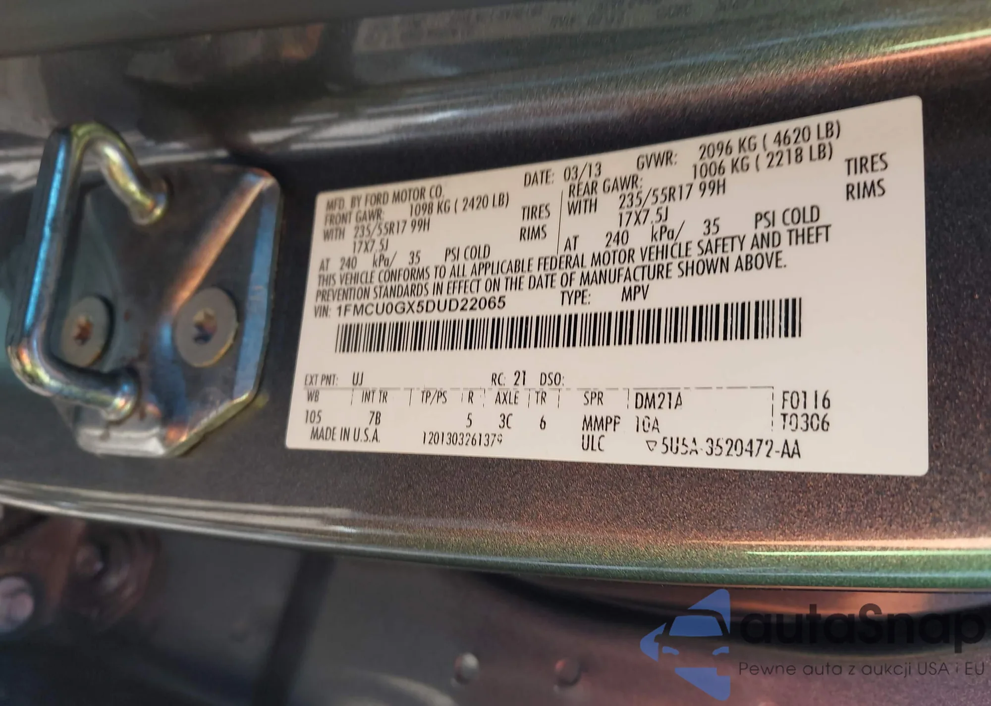 • VIN 1FMCU0GX5DUD22065