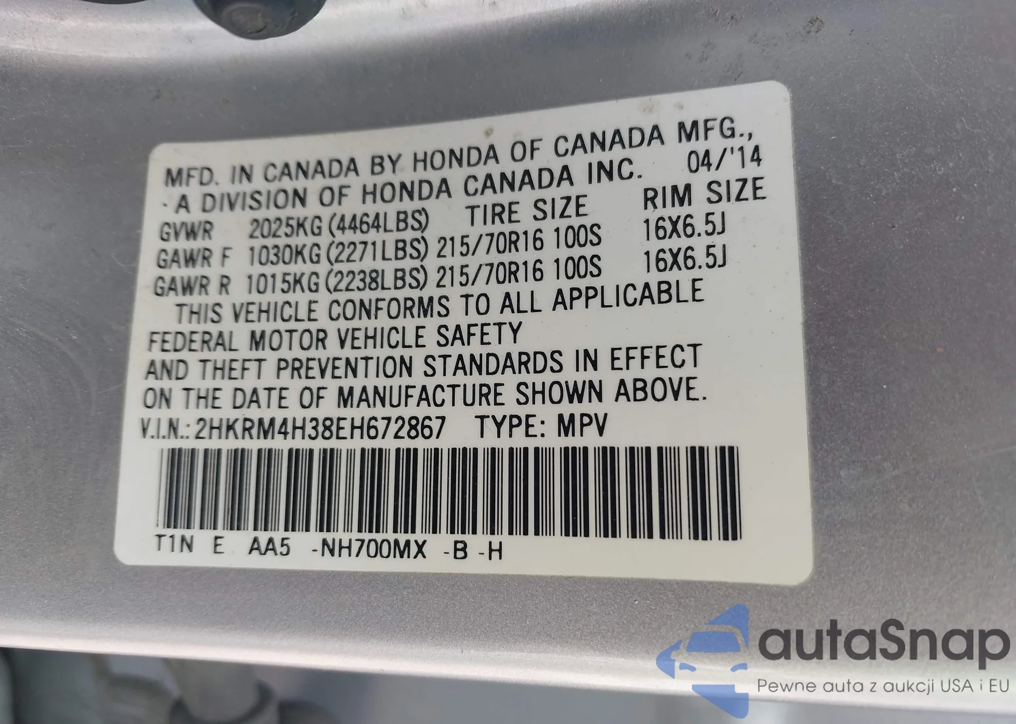• VIN JHMCR6F79HC025479