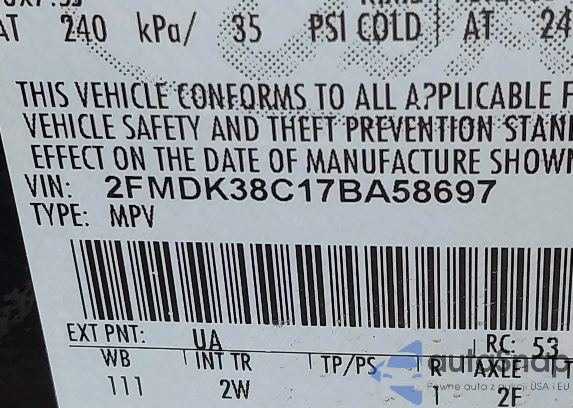 • VIN 2FMDK38C17BA58697