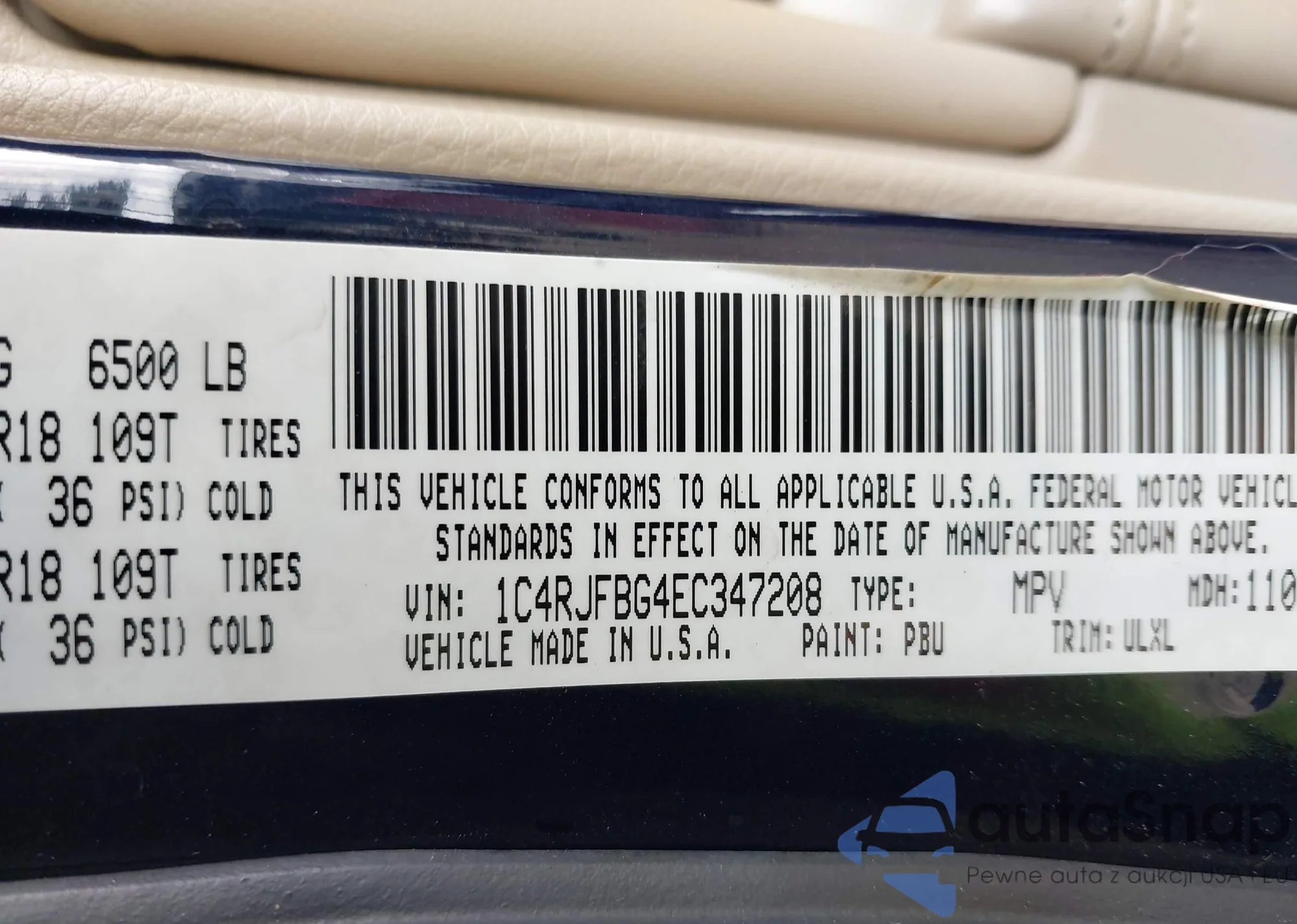 • VIN 1C4RJFBG4EC347208