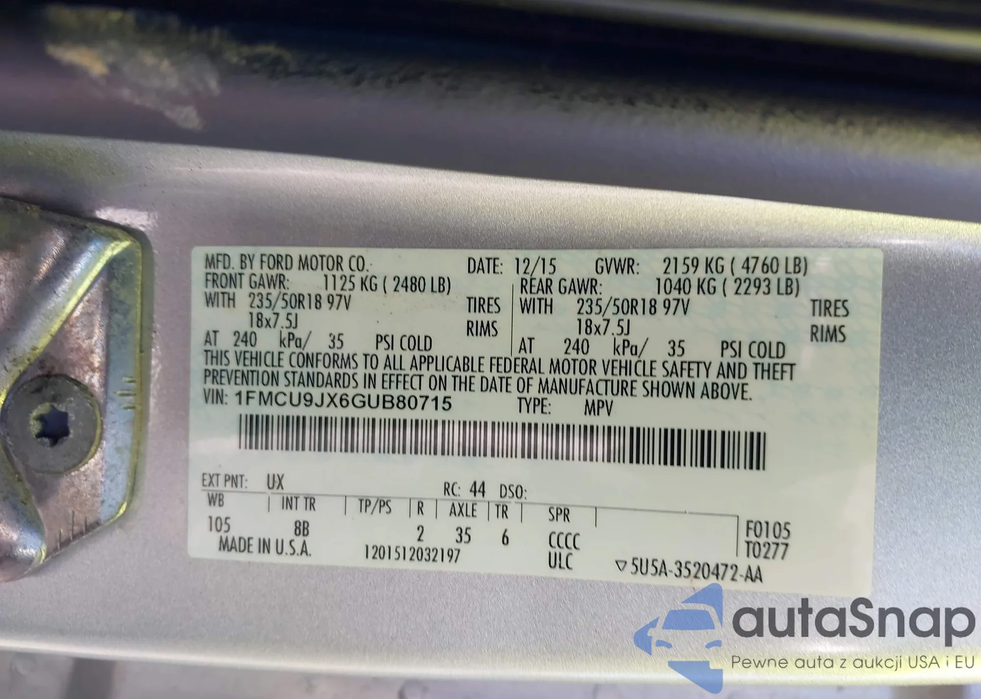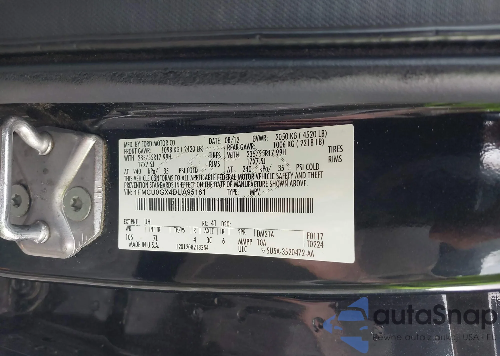 • VIN 1FMCU0GX4DUA95161