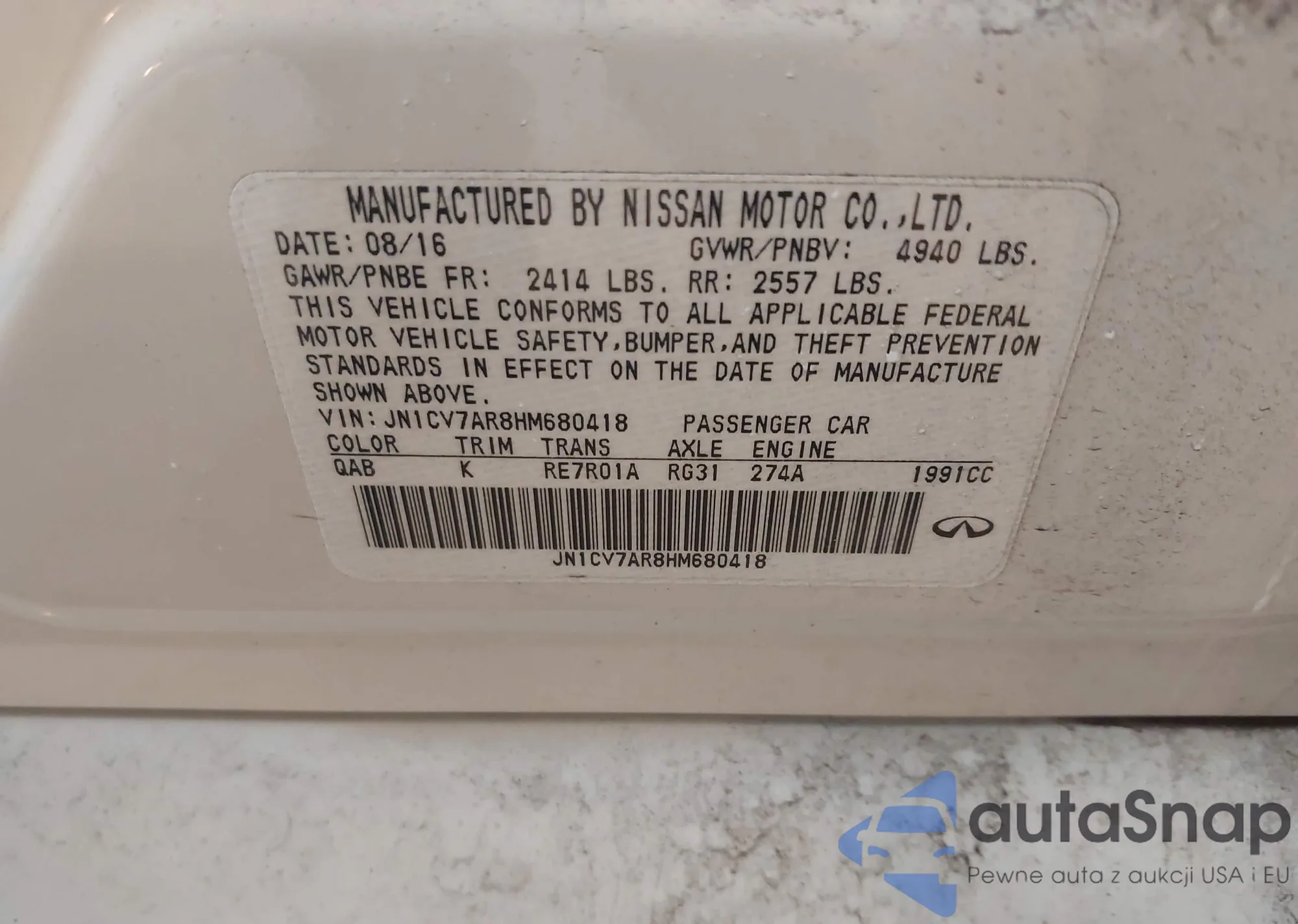 • VIN JN1CV7AR8HM680418