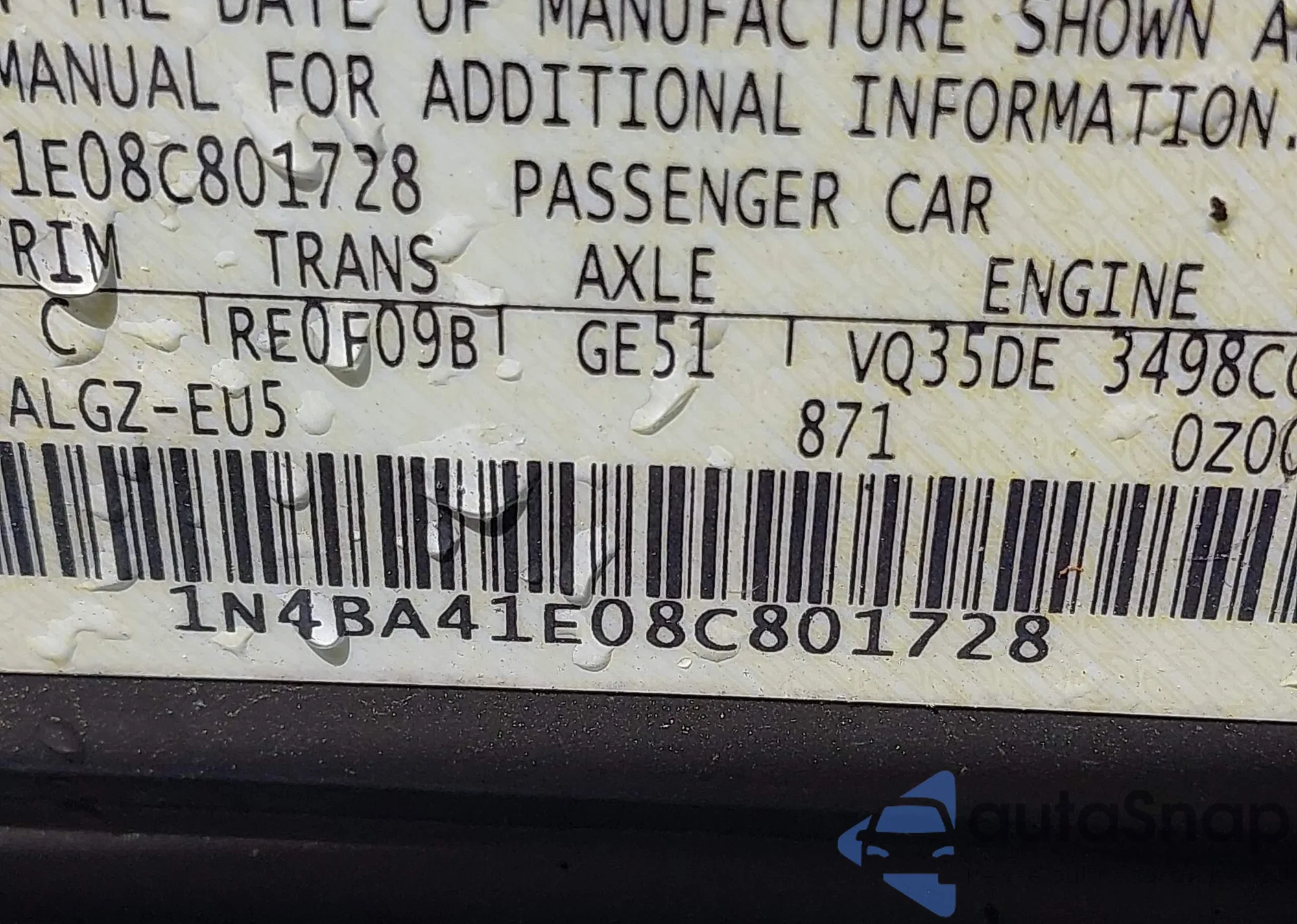 • VIN 1N4BA41E08C801728