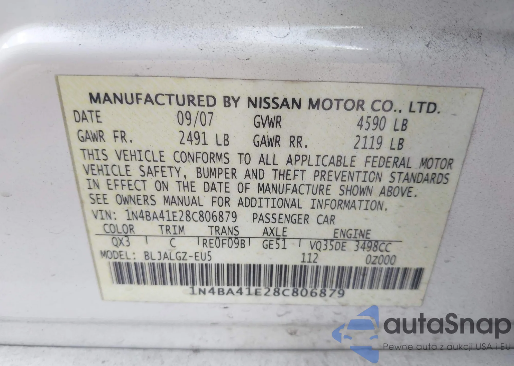 LOT: 42142274 VIN: 1N4BA41E08C801728