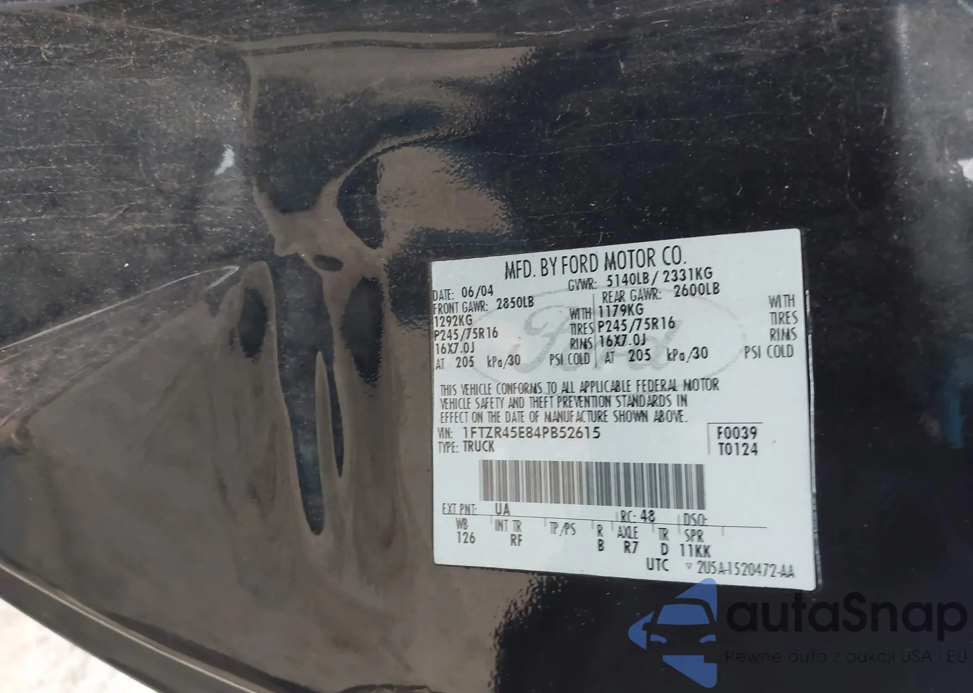 LOT: 42361345 VIN: 1FTZR45E84PB52615