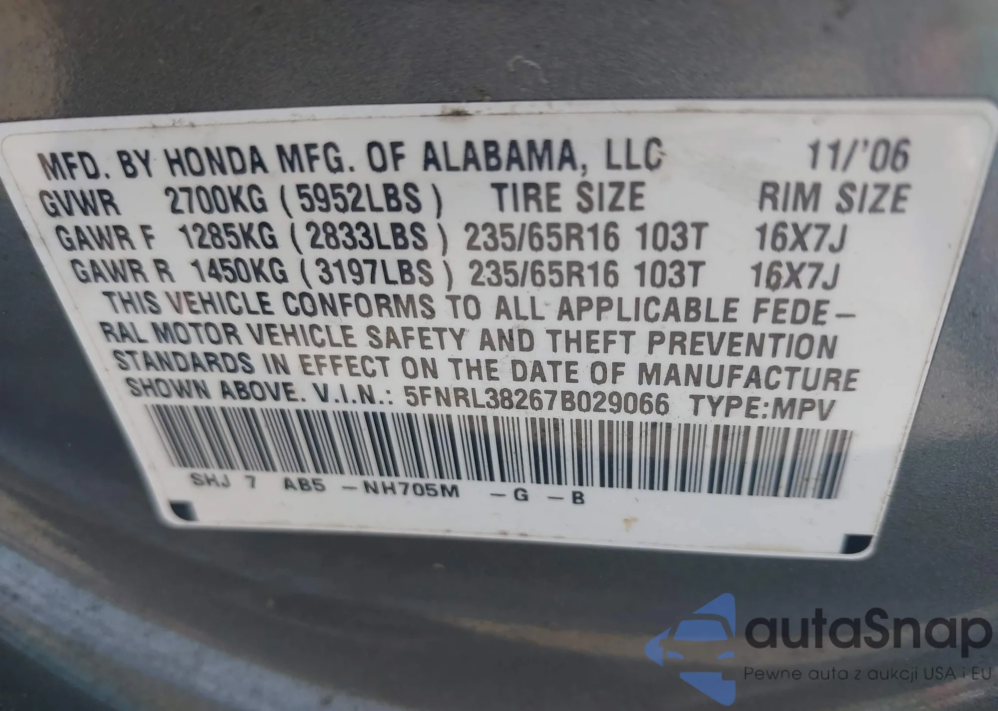 LOT: 42478297 VIN: 1HGCM66556A060092