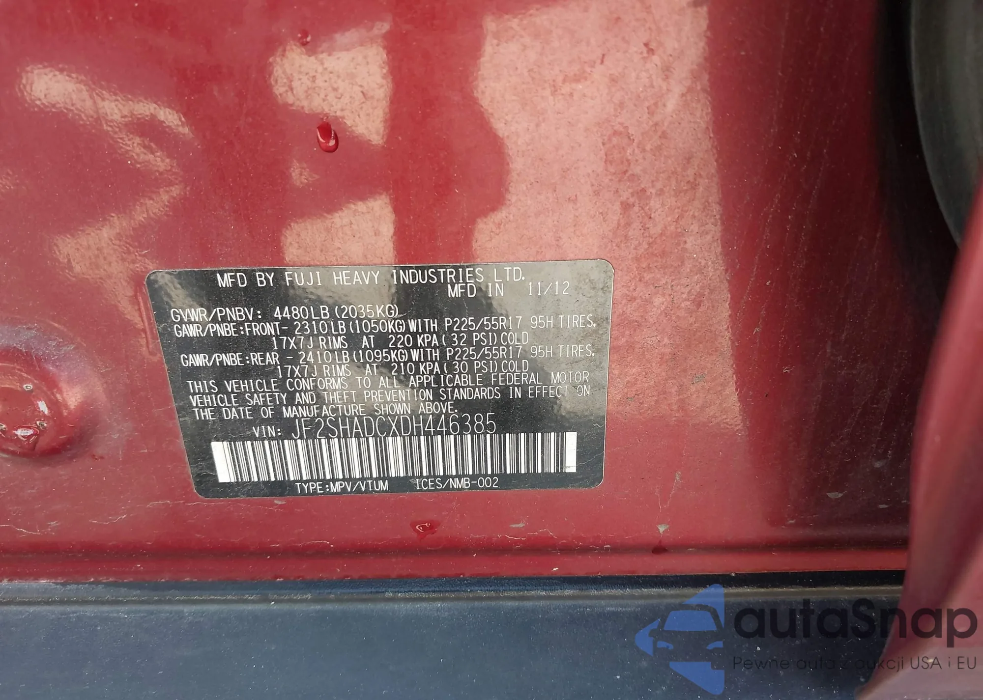 • VIN JF2SHADCXDH446385